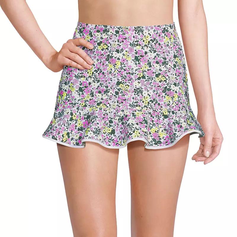 Elevate your beach look with this stylish swim skirt from Lands' End, designed with a playful ruffle hem that flatters and lengthens. Featuring an attached panty for comfort and full coverage, this chlorine-resistant piece allows you to mix and match with your favorite tops, ensuring a secure fit whether you're swimming or lounging by the pool. Click on this WOMEN'S GUIDE to find the perfect fit and more! - https://www.kohls.com/feature/womens-fit-guide.jsp. FEATURES: Jersey knit construction, UPF 50 sun protection, No closure - pull-on styling, Partially lined, Lined gusset. FIT & SIZING: Super high rise sits on the natural waistline, Hip and thigh minimizing, Elastic waistband, Full coverage. FABRIC & CARE: Polyester, spandex, Polyester, spandex gusset and lining, Hand wash, Imported. Size: 12. Color: Clear Blue. Gender: female. Age Group: adult. Material: NONE.