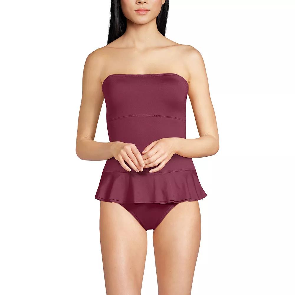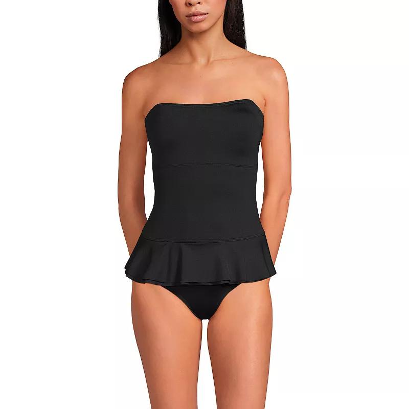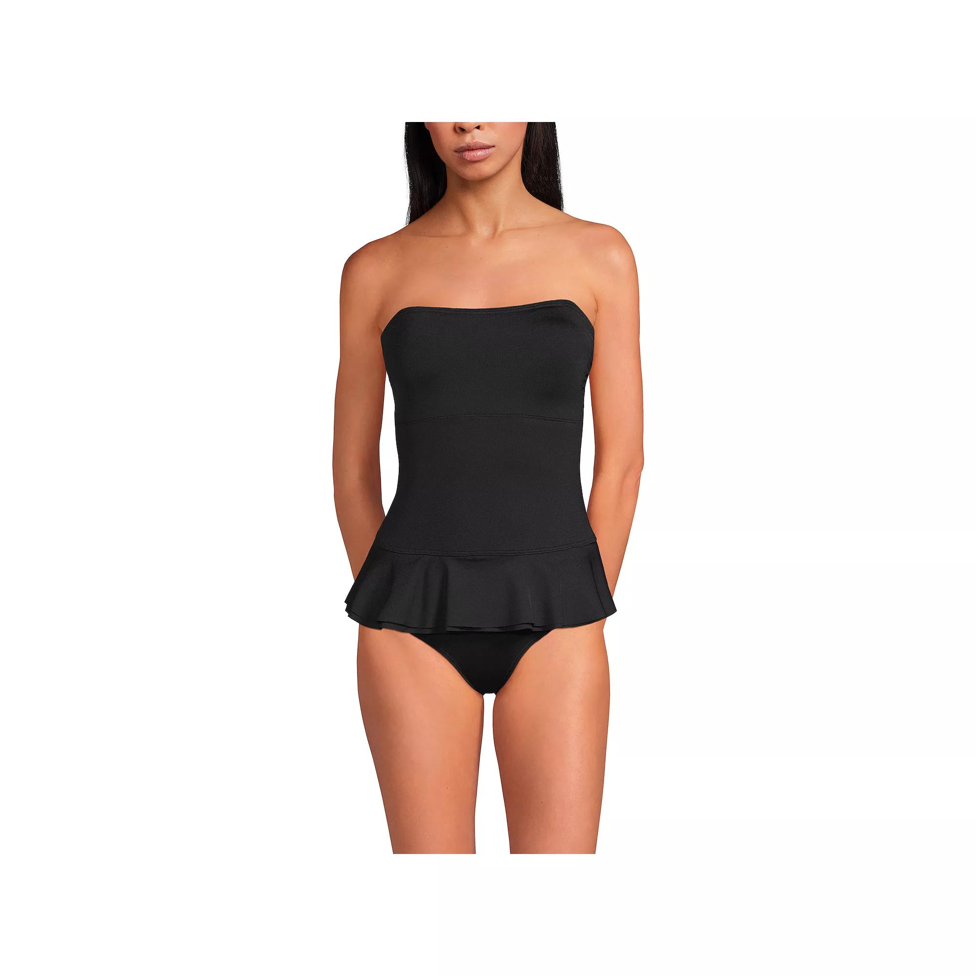 Dive into confidence with the Lands' End one-piece swimsuit designed to sculpt and support your beautiful figure. This bandeau-style suit combines comfort and femininity, making it perfect for lounging by the pool or enjoying a day at the beach. Click on this WOMEN'S GUIDE to find the perfect fit and more! - https://www.kohls.com/feature/womens-fit-guide.jsp. FEATURES: Moderate coverage, Off-the-shoulder neckline, Sleeveless, Attached soft bra cups, Wireless, UPF 50 sun protection, Tummy slimmer, Lined gusset, Partially lined, Pullover styling, Jersey knit construction. FIT & SIZING: Bandeau style with adjustable, removable straps. FABRIC & CARE: Polyester, spandex, Hand wash, Imported. Size: 16. Color: Black. Gender: female. Age Group: adult. Material: NYLON.