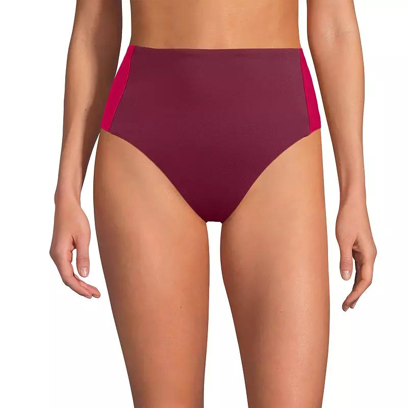 Elevate your swimwear collection with Lands' End high-waisted bikini bottoms, designed to flatter with a sleek high-leg cut and stylish seamed sides. Perfect for mix and match, these bottoms offer chlorine-resistant fabric and UPF 50 sun protection, ensuring both comfort and confidence by the water. Click on this WOMEN'S GUIDE to find the perfect fit and more! - https://www.kohls.com/feature/womens-fit-guide.jsp. FEATURES: These high-waisted bikini bottoms are designed to flatter and elongate with a sleek high-leg cut and seamed sides featuring a subtle border detail, High Leg: elongates the legs with our least amount of coverage, Mix tops and bottoms (sold separately) to suit your style, UPF 50 sun protection, No closure - pull-on styling, Partially lined. FIT & SIZING: High waist style sits just below your natural waist, Elastic waistband. FABRIC & CARE: Polyester, spandex, Nylon, spandex lining, Hand wash. Size: 10. Color: Burgundy Coral Ruby. Gender: female. Age Group: adult. Material: POLY BLEND.