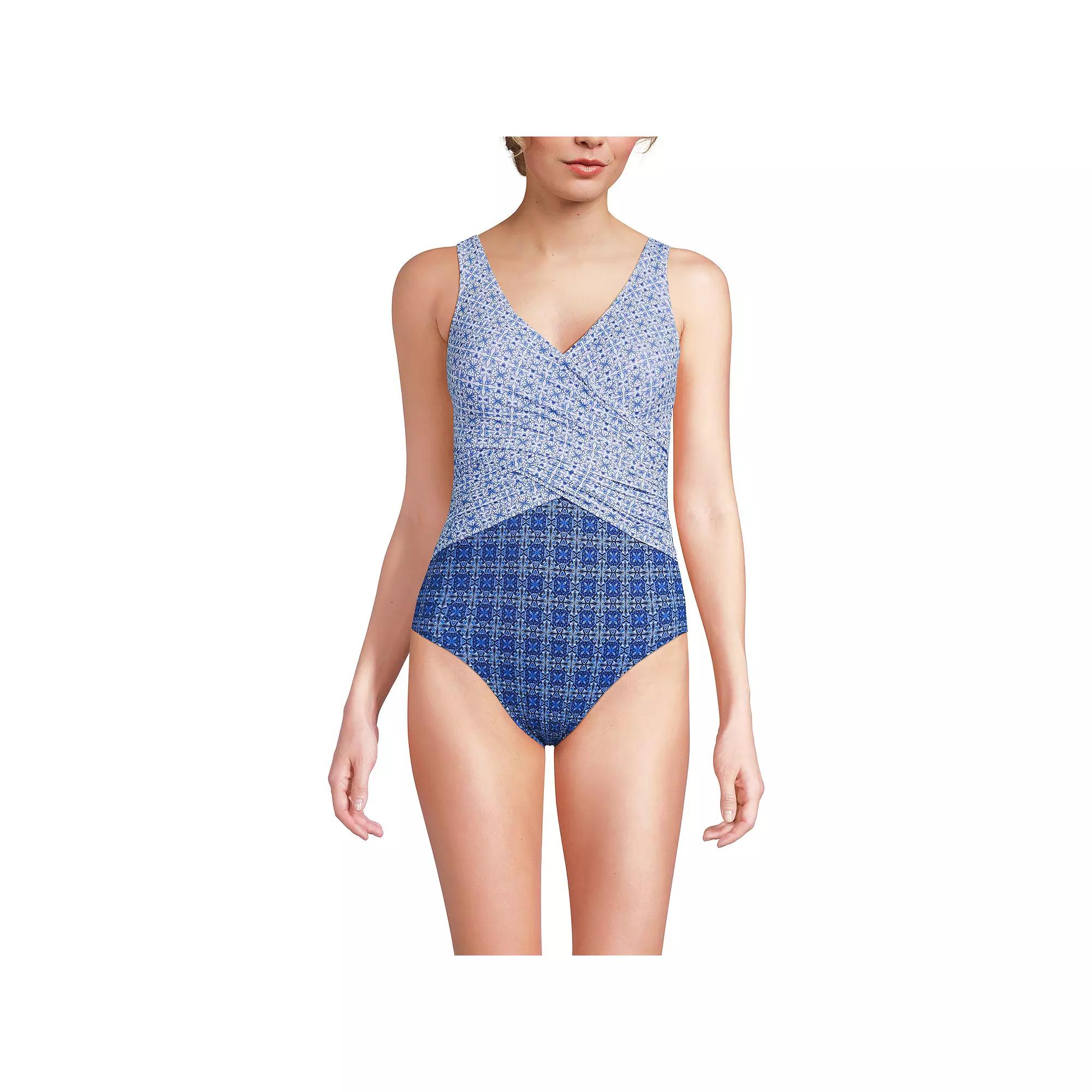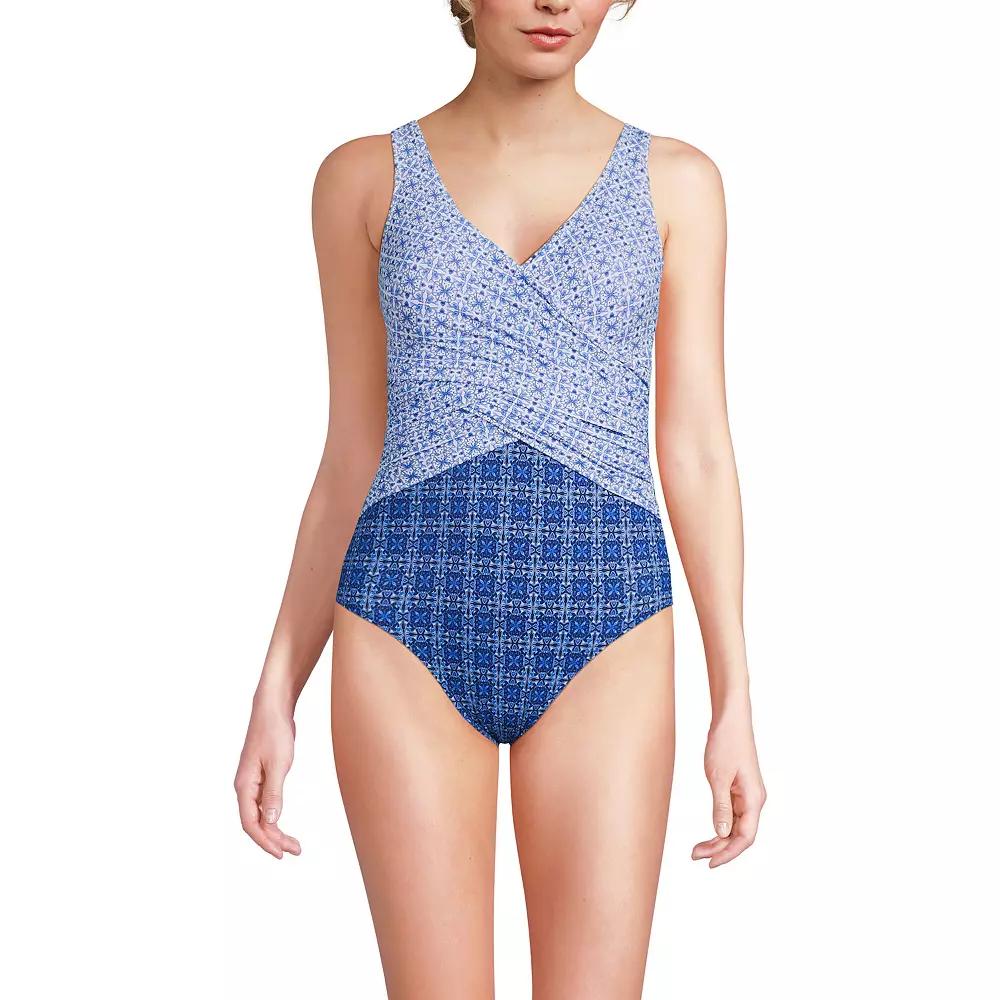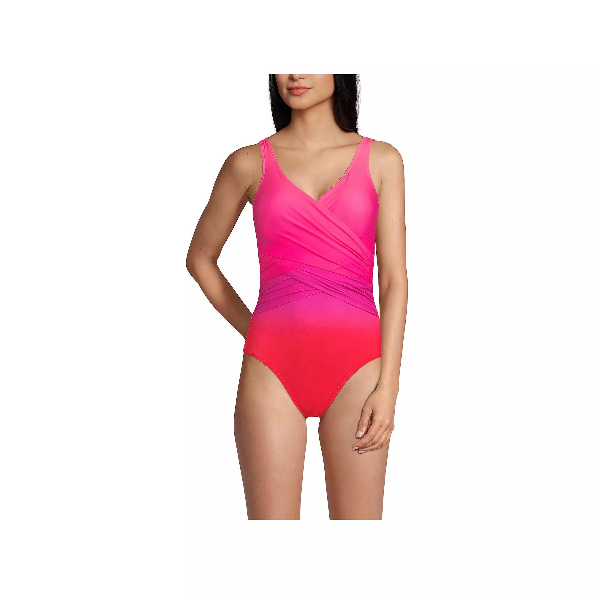 Smoothing, shaping SlenderTex design and a surplice neckline combine to give this women's Lands' End one-piece swimsuit a lovely poolside look. Kohl's Lands' End Women's Swim Size Chart - https://www.kohls.com/media/digital/ecom/size-charts/womens/html/Kohls_LandsEnd_Womens_Swim_SizeChart.html. Click on this WOMEN'S GUIDE to find the perfect fit and more! - https://www.kohls.com/feature/womens-fit-guide.jsp. Slimming Slendersuit design makes you look a size smaller, LYCRA® Xtra Life spandex helps your suit last longer, Resists breakdown from chlorine, sunscreen, UV rays and sweat, Tummy slimmer design, UPF 50 sun protection, Surplice neckline, Lined. FIT & SIZING: Available in long torso, Soft cups, Medium-Impact. FABRIC & CARE: Nylon, spandex, Hand wash, Imported. Size: 10. Color: Pink Team Ombre. Gender: female. Age Group: adult. Material: NONE.