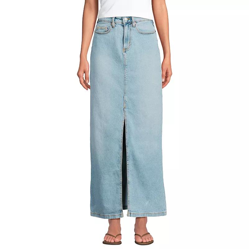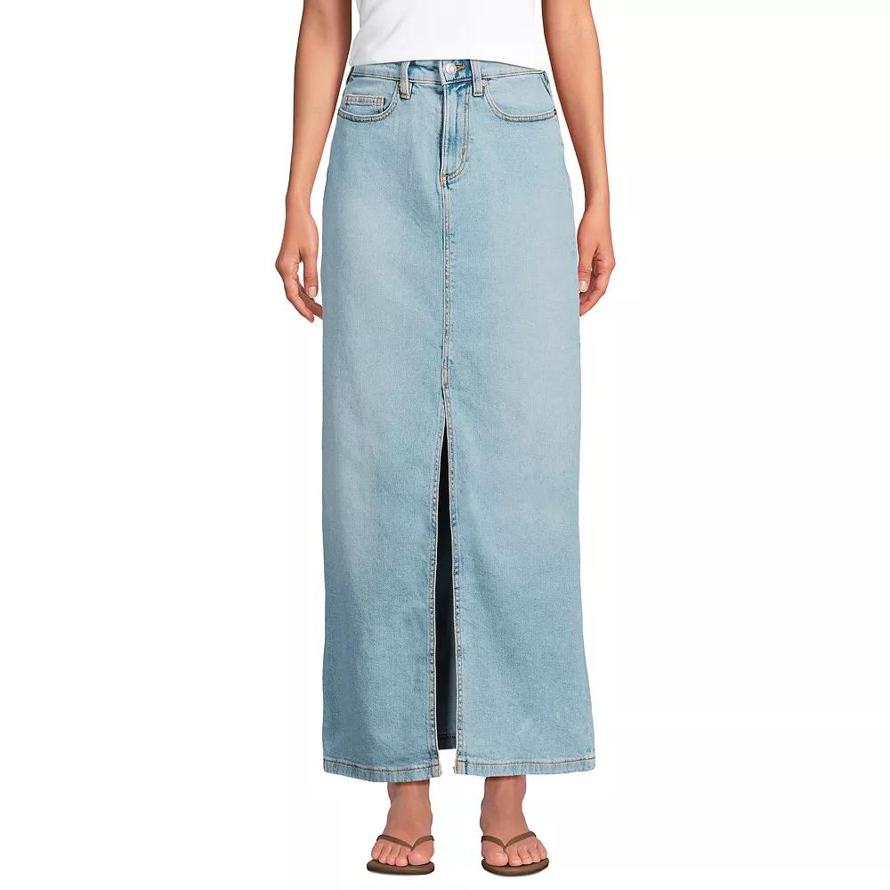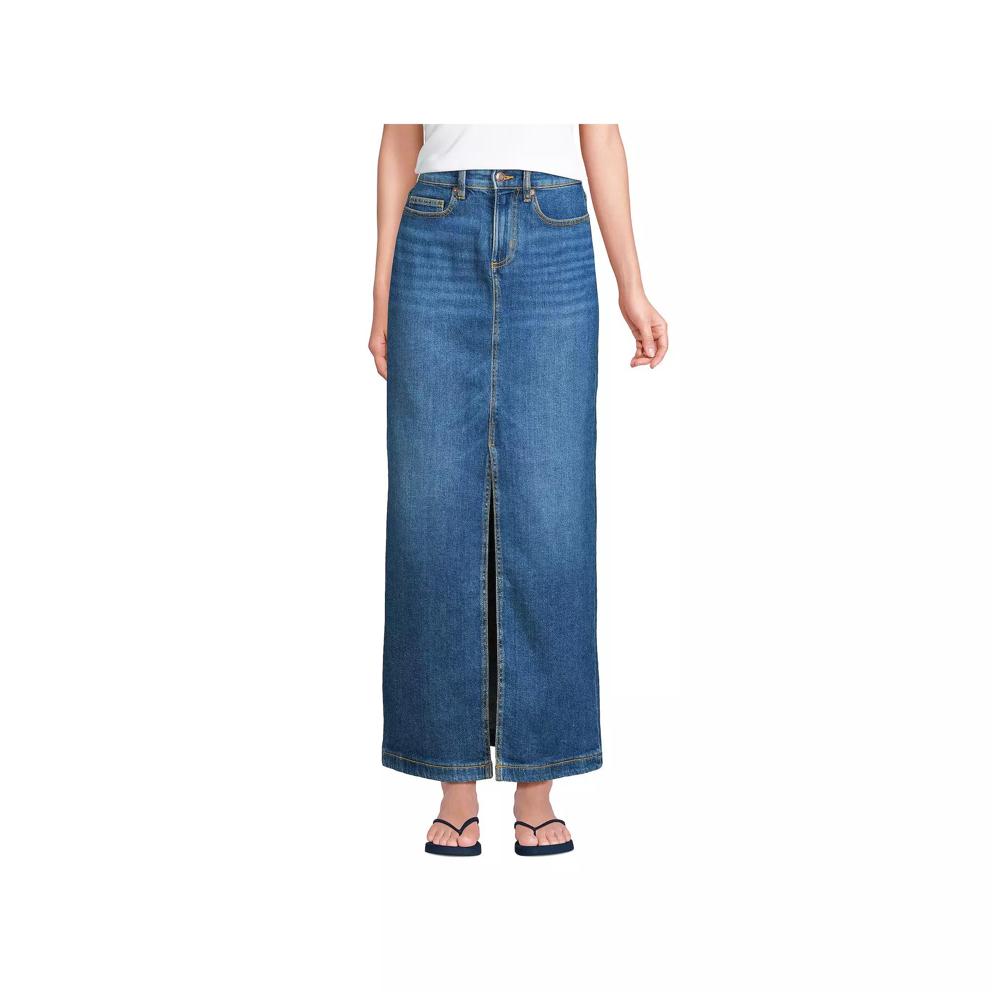 Elevate your wardrobe with this stylish denim maxi skirt from Lands' End, designed to sit comfortably at your natural waist and move effortlessly with you throughout the day. The classic five-pocket style adds a touch of timeless chic, making it perfect for everything from office days to weekend outings, while the soft fabric ensures both comfort and a flattering fit. Click on this WOMEN'S GUIDE to find the perfect fit and more! - https://www.kohls.com/feature/womens-fit-guide.jsp. FEATURES: Soft, yet substantial denim with a hint of stretch, Classic 5-pocket design, Zipper front. FIT & SIZING: 30-in. length, Maxi length hits at the ankle, High rise sits below the natural waistline. FABRIC & CARE: Cotton, spandex, Machine wash, Imported. Size: 4. Color: Hutton Blue Wash. Gender: female. Age Group: adult. Material: COTTON BLEND.
