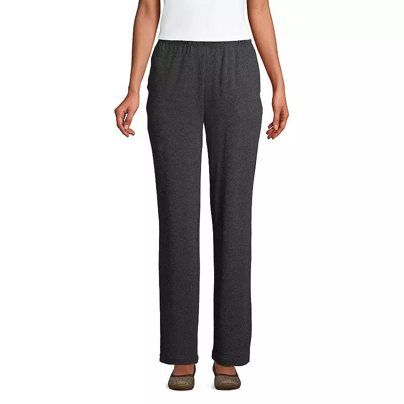 Get the comfort of sweats and the polished look of dress pants wearing these women's Lands' End French terry pants. Click on this WOMEN'S GUIDE to find the perfect fit and more! - https://www.kohls.com/feature/womens-fit-guide.jsp. Soft cotton interlock construction, 2 pockets. FIT & SIZING: Average: 30-in. inseam, Tall 32-in. inseam, Relaxed, straight-leg cut, High rise sits on the natural waist, Elastic waistband. FABRIC & CARE: Cotton, spandex; Cotton, Machine wash, Imported. Size: Large. Color: Black. Gender: female. Age Group: adult. Pattern: Solid. Material: POLY BLEND.
