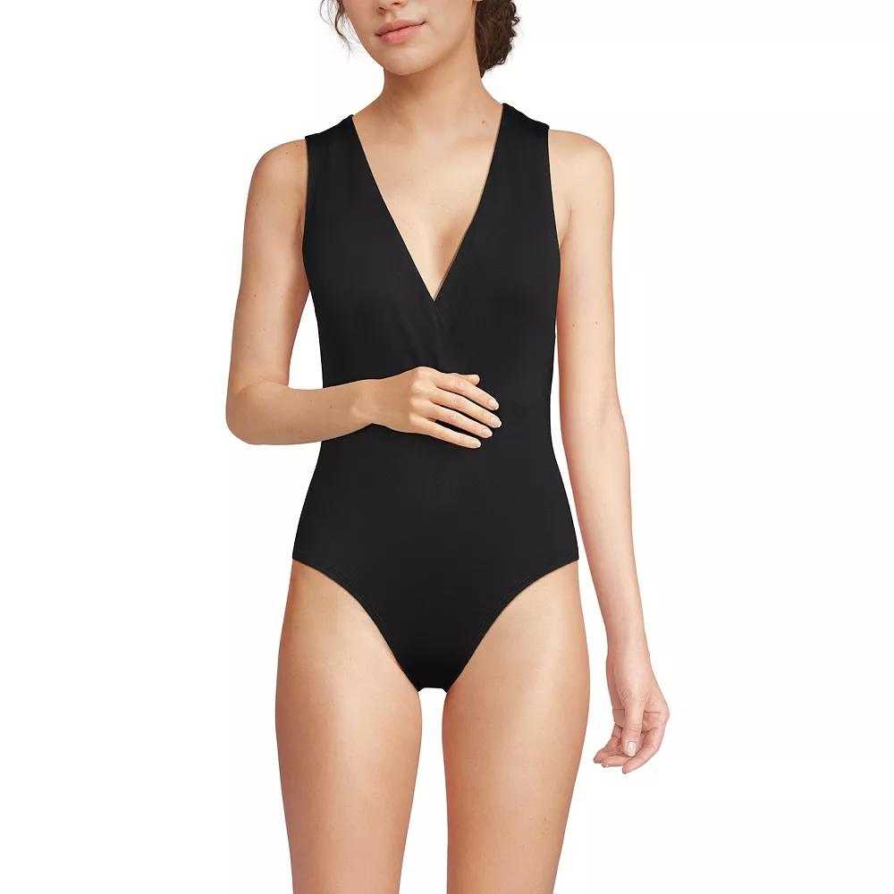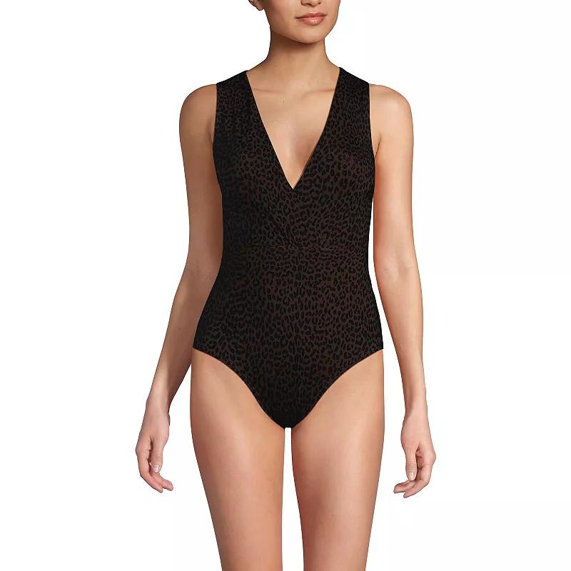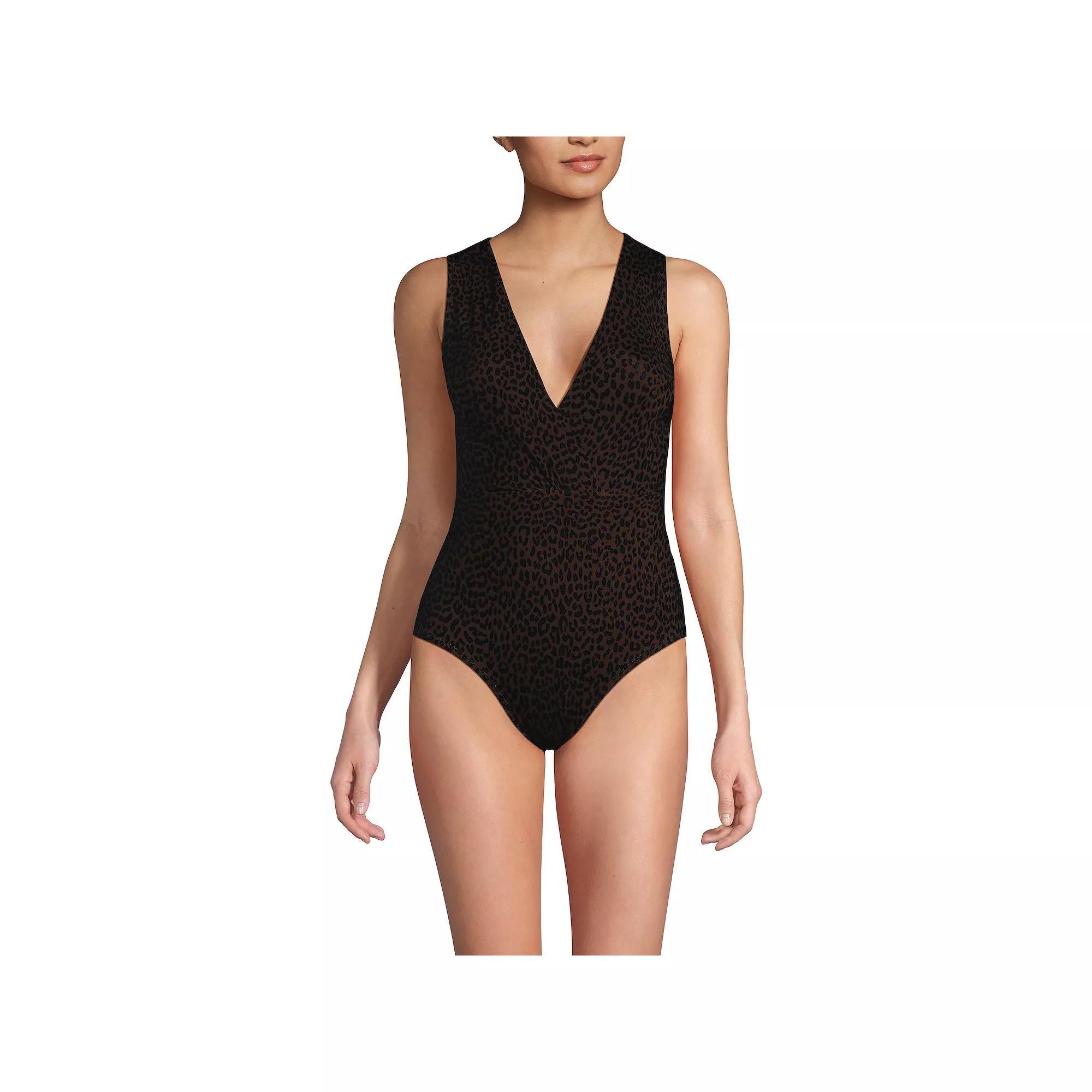 Dive into summer with this Lands' End one-piece that pairs classic elegance with a playful twist. The flattering surplice front and low-V back create a gorgeous silhouette, while an adjustable tie lets you achieve that perfect fit—because who says style can't be comfortable and fun? Click on this WOMEN'S GUIDE to find the perfect fit and more! - https://www.kohls.com/feature/womens-fit-guide.jsp. FEATURES: Adjustable tie at upper back for customized fit, Surplice front with low-V back for a flattering neckline, Bust darts and center-back seam enhance structure, Tummy slimming design for a sleek silhouette, Chlorine-resistant spandex fabric with UPF 50 sun protection. MATERIAL & CARE: Nylon, spandex, Lining: polyester, spandex, Hand wash. DETAILS: V-neck, Sleeveless, Adjustable straps, No closure - pullover styling, Moderate coverage, Imported. Size: X Small. Color: Brown Leopard. Gender: female. Age Group: adult. Material: NONE.