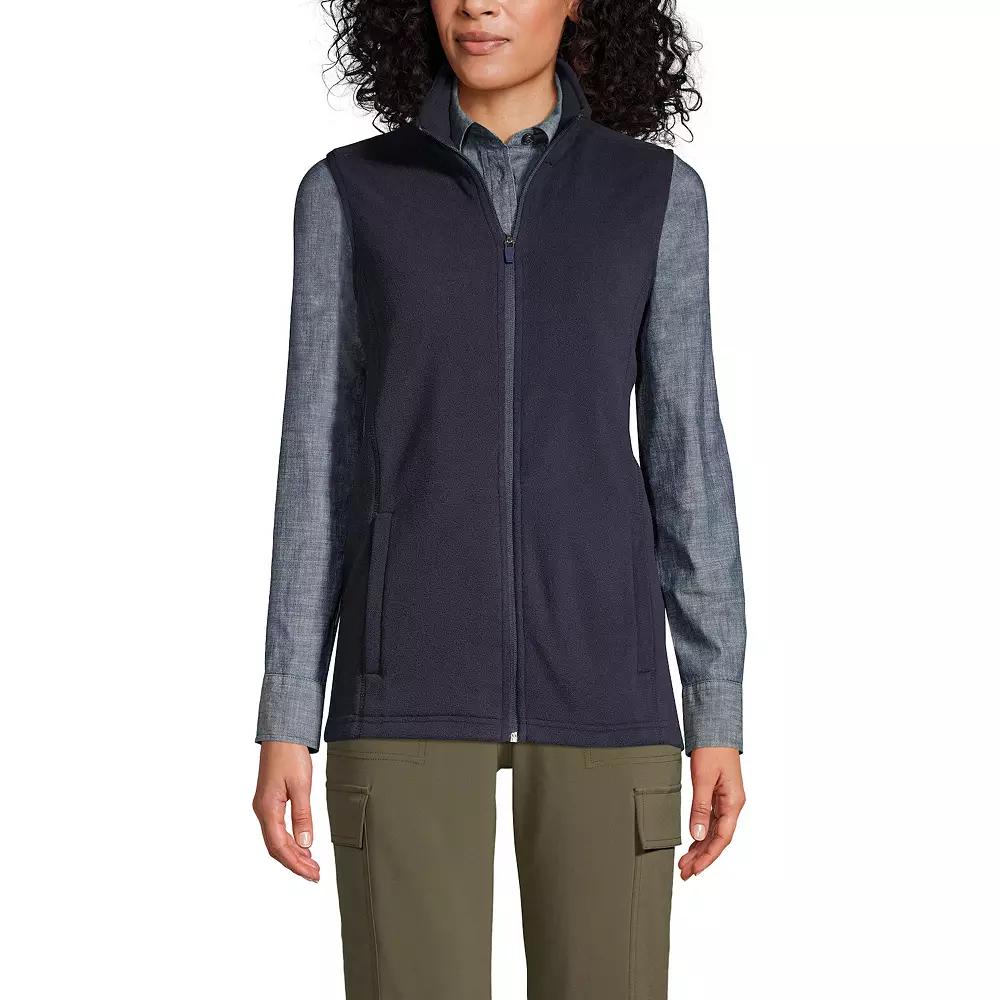 Add an extra layer of warmth to your look when you wear this Womens Lands End Thermacheck 100 Vest. Click on this WOMENS GUIDE to find the perfect fit and more! Add an extra layer of warmth to your look when you wear this Womens Lands End Thermacheck 100 Vest. Click on this WOMENS GUIDE to find the perfect fit and more! FEATURES Water-resistant technology Thermacheck construction 2 front pockets Zipper closure SleevelessFIT & SIZING 26-in. length from shoulder to hem Designed to hit at the waist MidweightFABRIC & CARE 100% polyester shell, fill, and lining Machine wash and tumble dry Imported Size: Medium. Color: Blue. Gender: female. Age Group: adult. Material: Fleece.