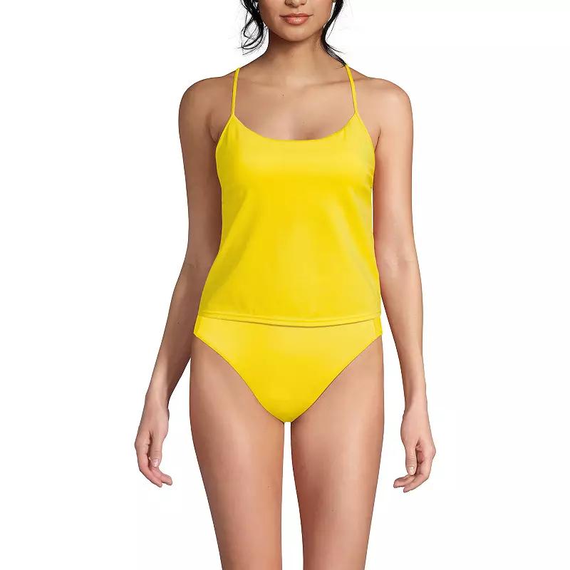 Dive into summer with this stylish swim top from Lands' End, designed for ultimate comfort and a stay-put fit that ensures you can focus on fun, not fuss. Featuring adjustable crisscross straps and a flattering classic length, it's perfect for mixing and matching with your favorite swim bottoms while providing essential sun protection for carefree days by the water. Click on this WOMEN'S GUIDE to find the perfect fit and more! - https://www.kohls.com/feature/womens-fit-guide.jsp. FEATURES: Stay-put, no-tug fit designed for both style and comfort, Tugless™ QuickDry fabric dries faster than the average swimsuit, UPF 50 sun protection, U-neck, Soft removable bra cups, Sleeveless, No closure - pullover styling. FIT & SIZING: Available in long torso, Adjustable straps, Fits up to a D-cup size. FABRIC & CARE: Nylon, polyester, spandex, Hand wash, Imported. Size: 16. Color: Vivid Lemon. Gender: female. Age Group: adult. Material: NYLON SPANDEX.