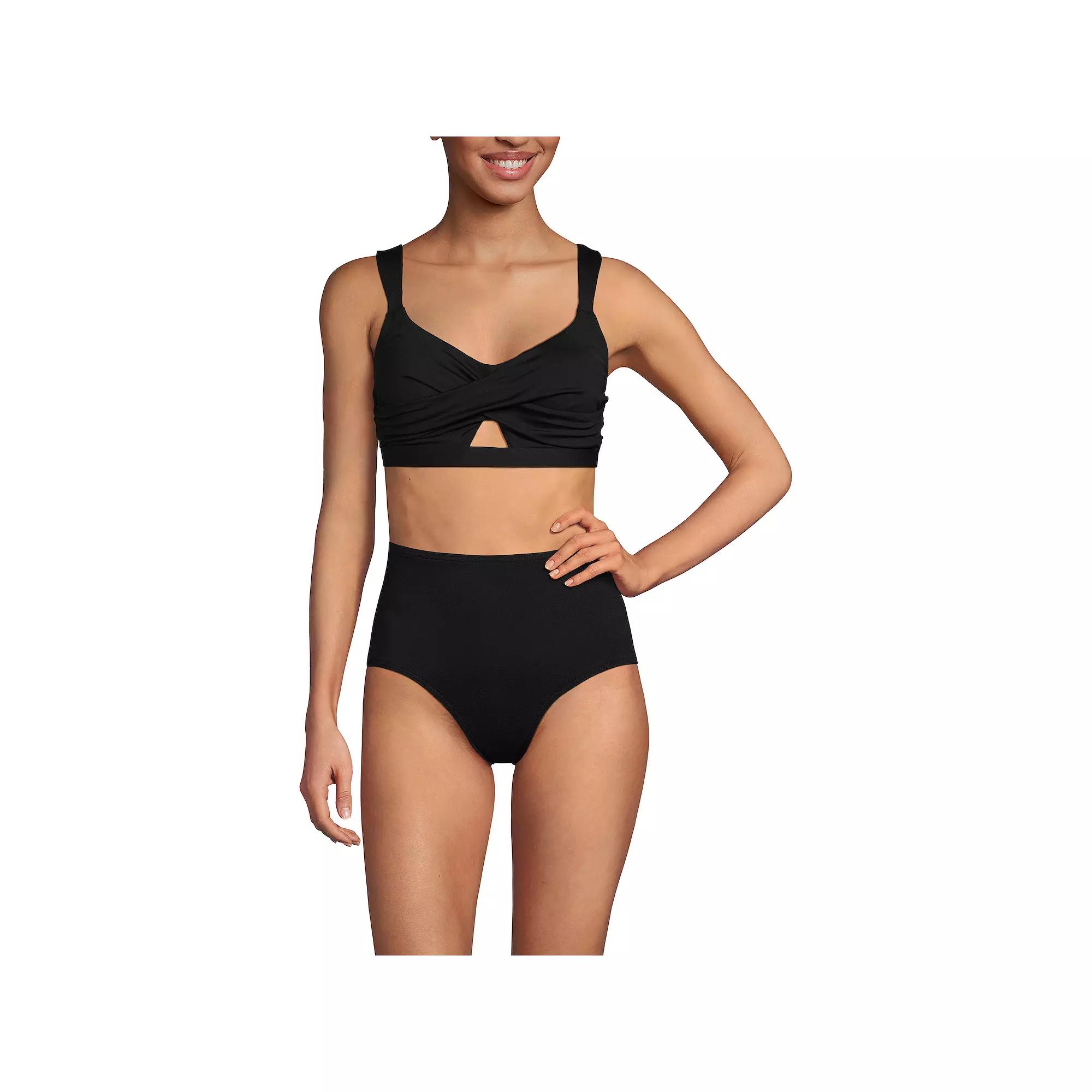 Embrace your playful side with this Lands' End bikini top that fuses style and support in perfect harmony. The twist-style front and flirty keyhole detail create a charming look, while the adjustable padded straps and cozy soft cups make sure you feel secure and confident, whether you're lounging poolside or catching waves. Click on this WOMEN'S GUIDE to find the perfect fit and more! - https://www.kohls.com/feature/womens-fit-guide.jsp. FEATURES: Soft stretchy jersey construction, Twist-style front with keyhole detail, Cut-out back band with double clasps, Power mesh lining for smooth support, Designed to hit above the belly button, Adjustable padded straps for comfort, Bust minimizer feature, UPF 50 sun protection, 3% of all 3BRAND revenue is donated to the Why Not You Foundation, a nonprofit organization founded by Russell and Ciara in 2014 dedicated to fighting poverty through education, empowering youth to lead with a why not you attitude. MATERIAL & CARE: Body: nylon, spandex, Lining: polyester, spandex, Hand wash. DETAILS: Hook-and-eye back closure, 2 hook rows, Adjustable straps, Moderate coverage, Sweetheart neckline, Sleeveless, Imported. WARNING: Cancer and Reproductive Harm - Reproductive Harm www.P65Warnings.ca.gov - https://www.p65warnings.ca.gov/. Size: Medium. Color: Black. Gender: female. Age Group: adult. Material: NONE.
