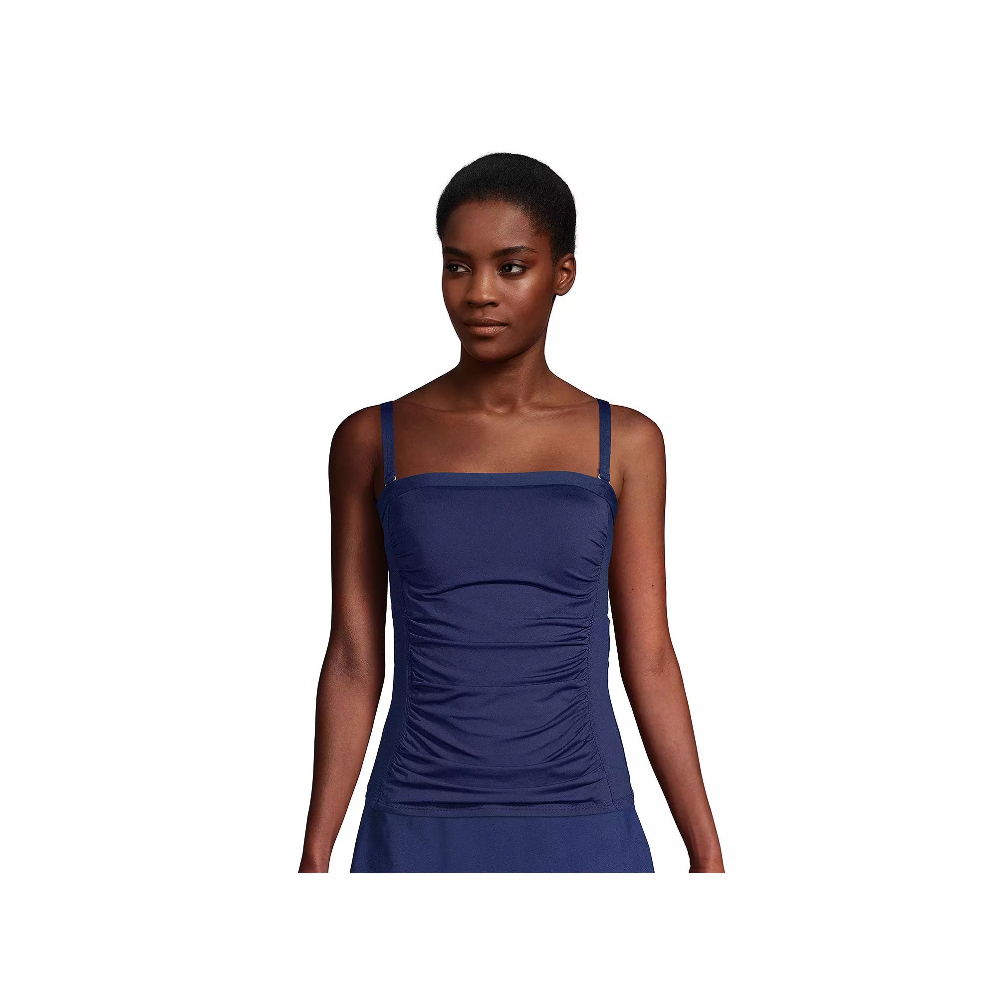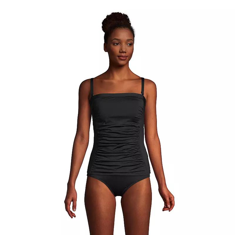You'll love the poolside style of this women's Lands' End tankini top, featuring UPF 50 sun protection and removable straps. Kohl's Lands' End Women's Swim Size Chart - https://www.kohls.com/media/digital/ecom/size-charts/womens/html/Kohls_LandsEnd_Womens_Swim_SizeChart.html. Click on this WOMEN'S GUIDE to find the perfect fit and more! - https://www.kohls.com/feature/womens-fit-guide.jsp. UPF 50 sun protection, Chlorine Resistant design, Bandeau neckliine, Shirred details, Lined. FIT & SIZING: Removable straps, Soft cups, Medium-Impact. FABRIC & CARE: Shell & bra: nylon, spandex, Lining: polyester, spandex, Hand wash, Imported. Size: 10. Color: Black. Gender: female. Age Group: adult. Pattern: Solid. Material: POLY BLEND.