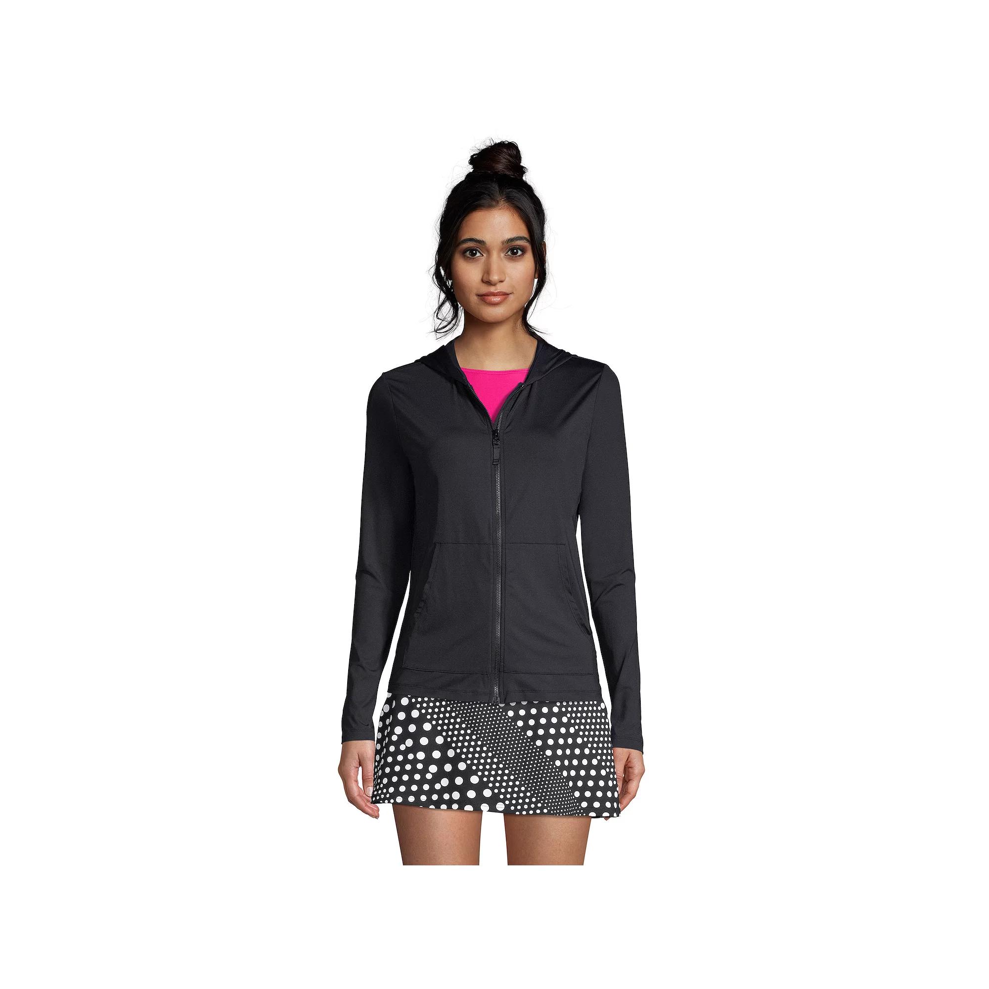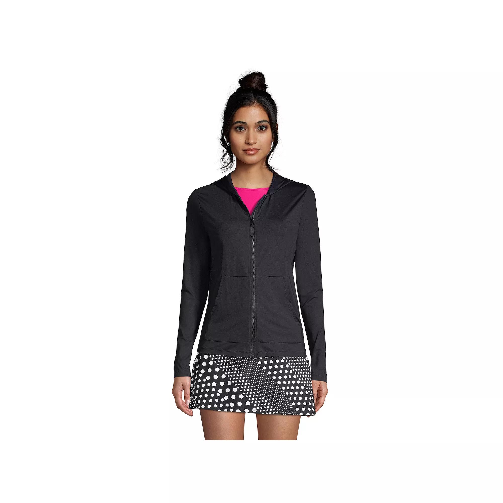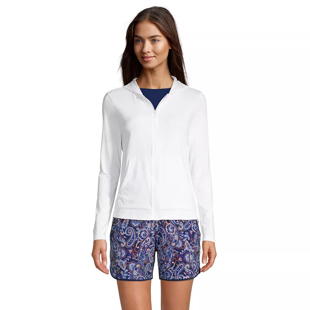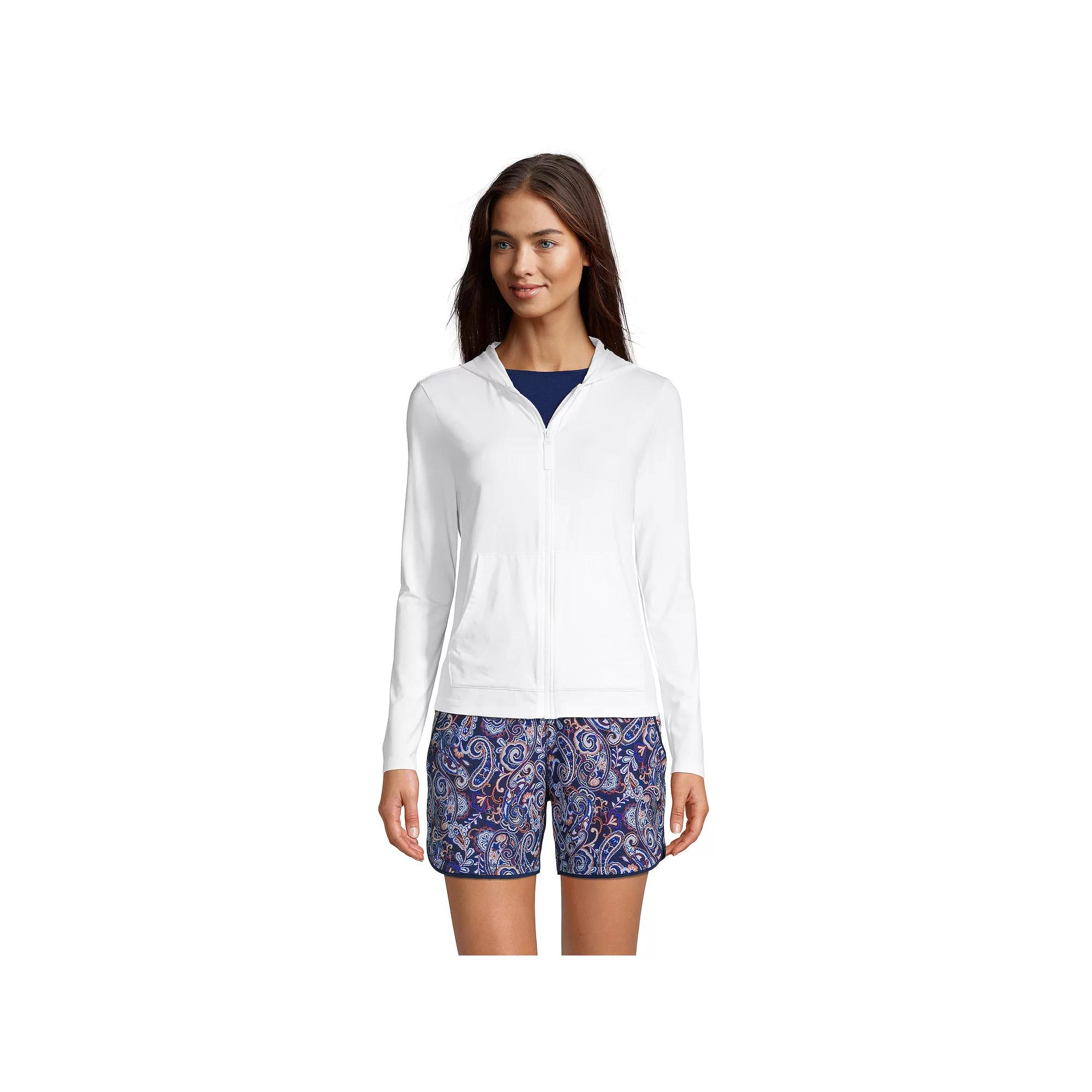 Go beyond the beach and stay covered up in style wearing this women's Lands' End rash guard cover-up, featuring UPF 50 sun protection. Kohl's Lands' End Women's Swim Size Chart - https://www.kohls.com/media/digital/ecom/size-charts/womens/html/Kohls_LandsEnd_Womens_Swim_SizeChart.html. Click on this WOMEN'S GUIDE to find the perfect fit and more! - https://www.kohls.com/feature/womens-fit-guide.jsp. UPF 50 sun protection, Zip front, Long sleeves, Hood, Kangaroo pouch pocket, Unlined. FIT & SIZING: Low-Impact. FABRIC & CARE: Nylon, spandex, Hand wash, Imported. Size: X Large. Color: White. Gender: female. Age Group: adult. Material: NYLON SPANDEX.