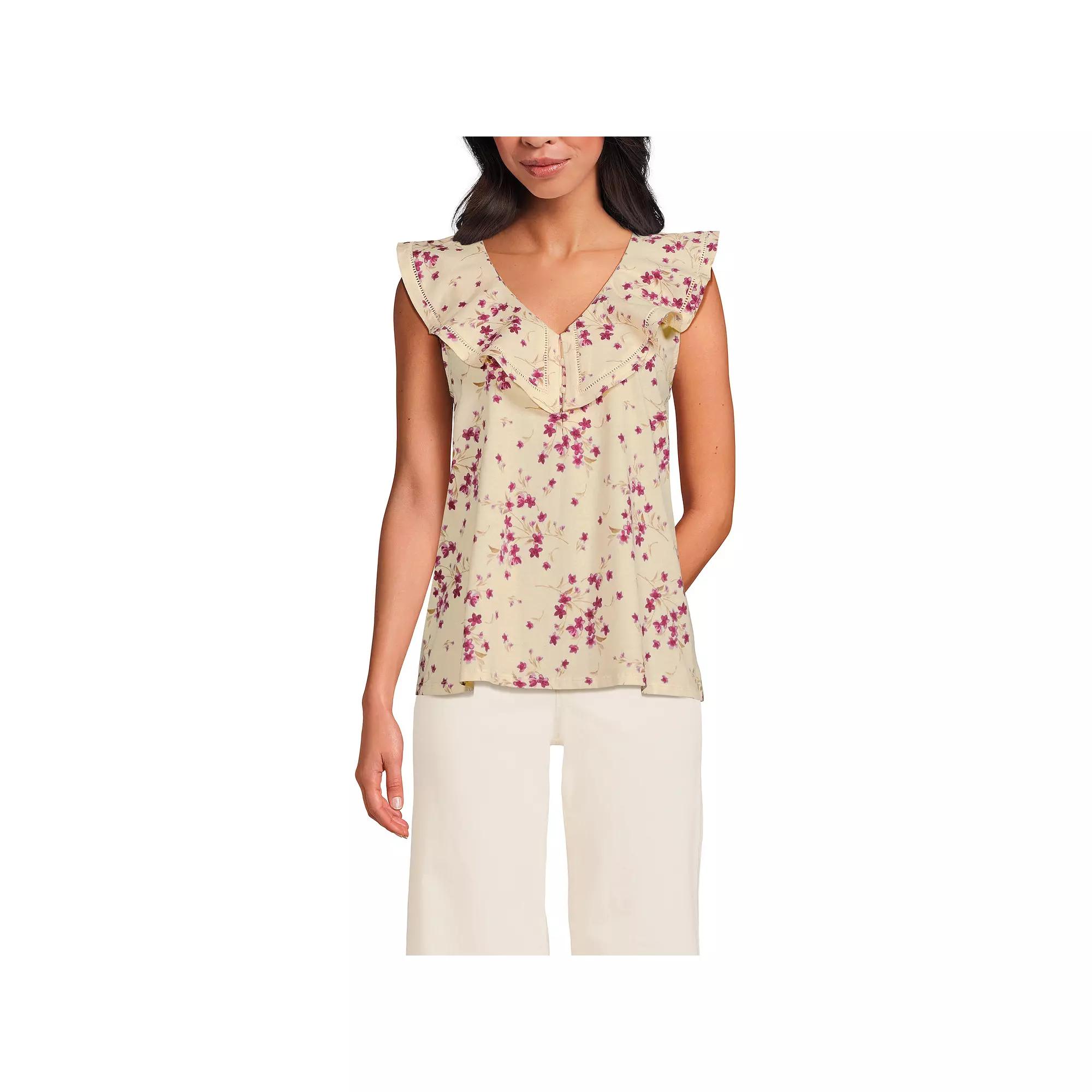 Elevate your everyday style with this chic top from Lands End, featuring a feminine ruffled V-neckline and a flowy, relaxed fit that falls gracefully to the high hip. Perfect for pairing with dress pants, skirts, or your favorite jeans, this versatile piece effortlessly combines comfort and elegance, making it a must-have addition to your wardrobe.Click on this WOMENS GUIDE to find the perfect fit and more!Elevate your everyday style with this chic top from Lands End, featuring a feminine ruffled V-neckline and a flowy, relaxed fit that falls gracefully to the high hip. Perfect for pairing with dress pants, skirts, or your favorite jeans, this versatile piece effortlessly combines comfort and elegance, making it a must-have addition to your wardrobe.Click on this WOMENS GUIDE to find the perfect fit and more!FEATURES V-neck Sleeveless Ruffle sleeves Straight hem Pullover stylingFIT & SIZING Relaxed fit 28-in. length from shoulder to hemFABRIC & CARE Cotton Machine wash Imported Size: Medium. Color: Deep Navy Bouquet. Gender: female. Age Group: adult.