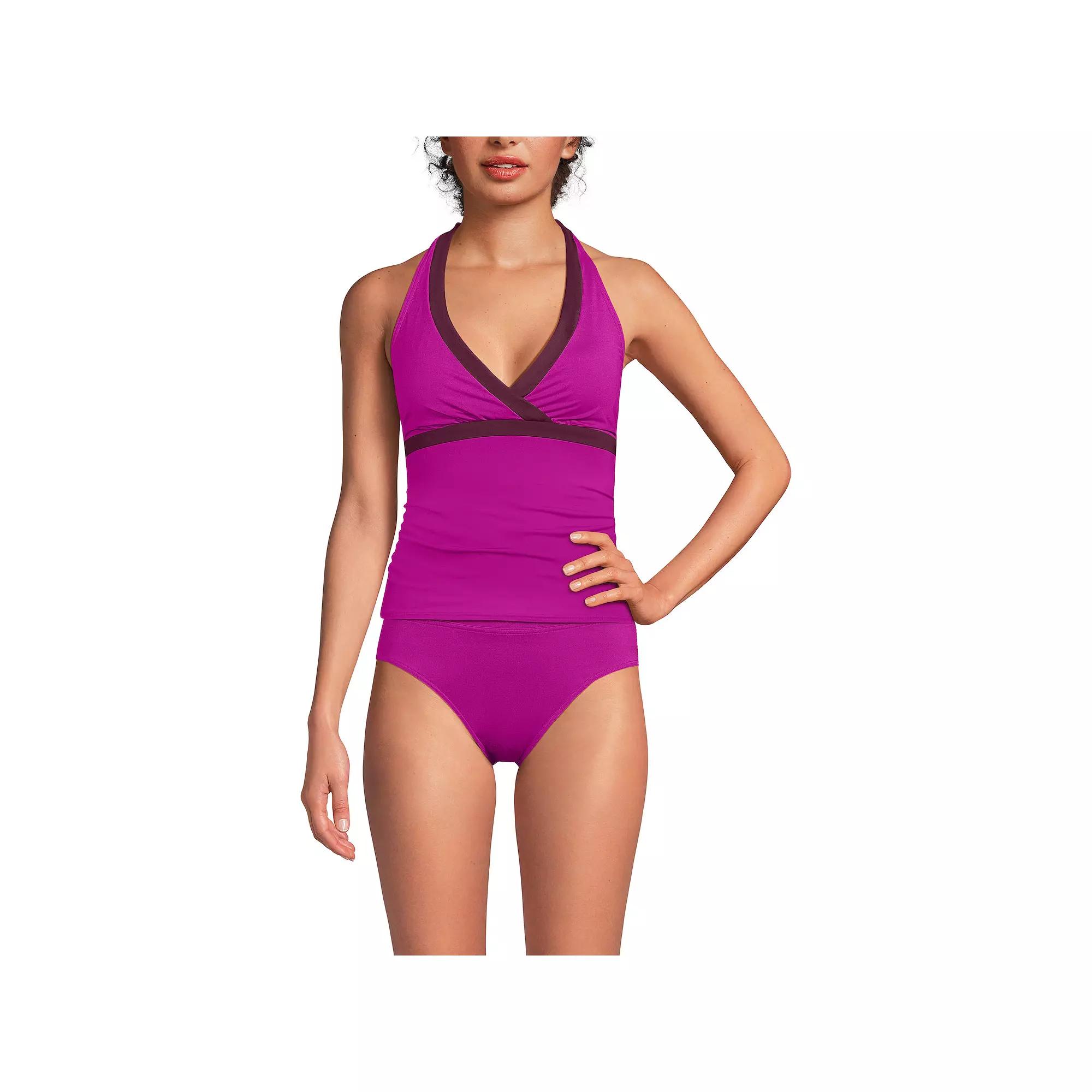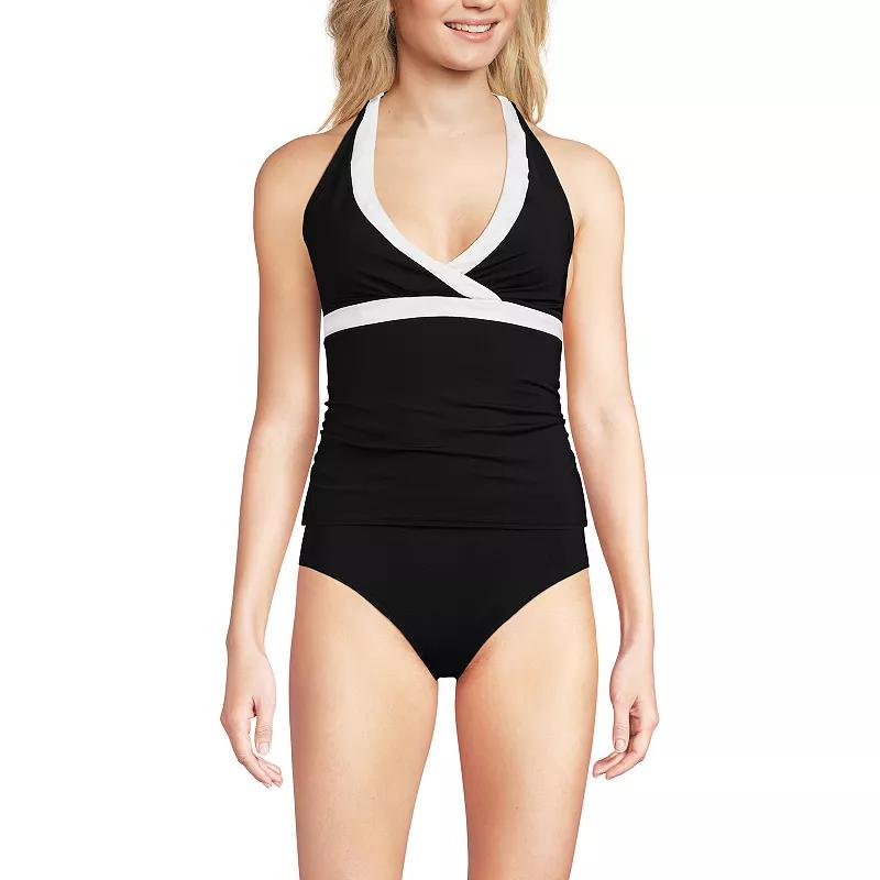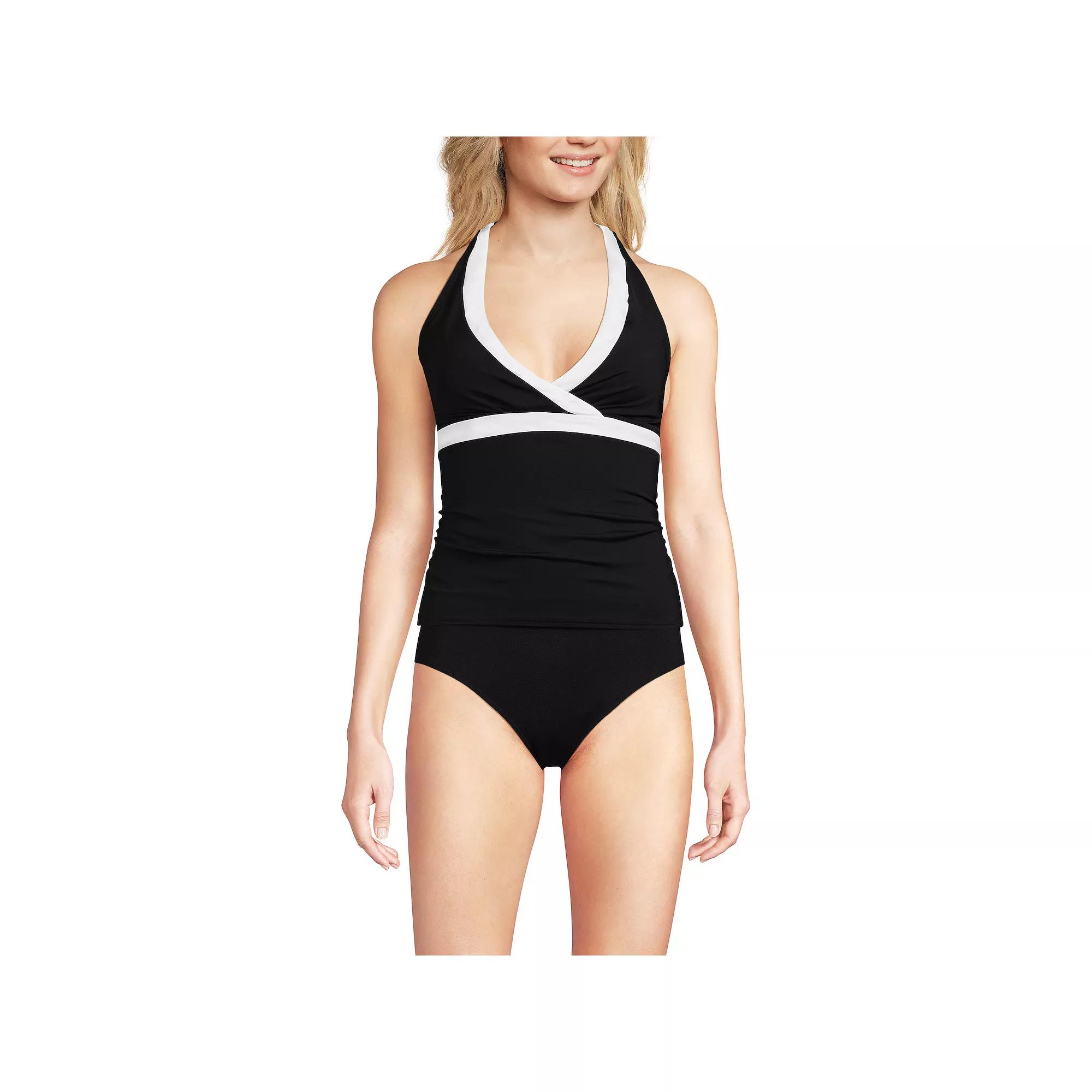 Elevate your swimwear collection with the versatile tankini from Lands' End, designed to flatter every figure with its chic V-neck and adjustable halter ties. Offering a supportive fit with removable soft cups, this tankini ensures confidence and comfort while you create your perfect beach or poolside look, combining effortlessly with your favorite swim bottoms. Click on this WOMEN'S GUIDE to find the perfect fit and more! - https://www.kohls.com/feature/womens-fit-guide.jsp. FEATURES: V-neck, Halter type adjustable straps, Chlorine-resistant, Removable cups, UPF 50 sun protection. FIT & SIZING: Fits up to a D-cup size, Full coverage. FABRIC & CARE: Nylon, spandex, Hand wash, Imported. Size: X Small. Color: Black White. Gender: female. Age Group: adult. Material: NYLON SPANDEX.