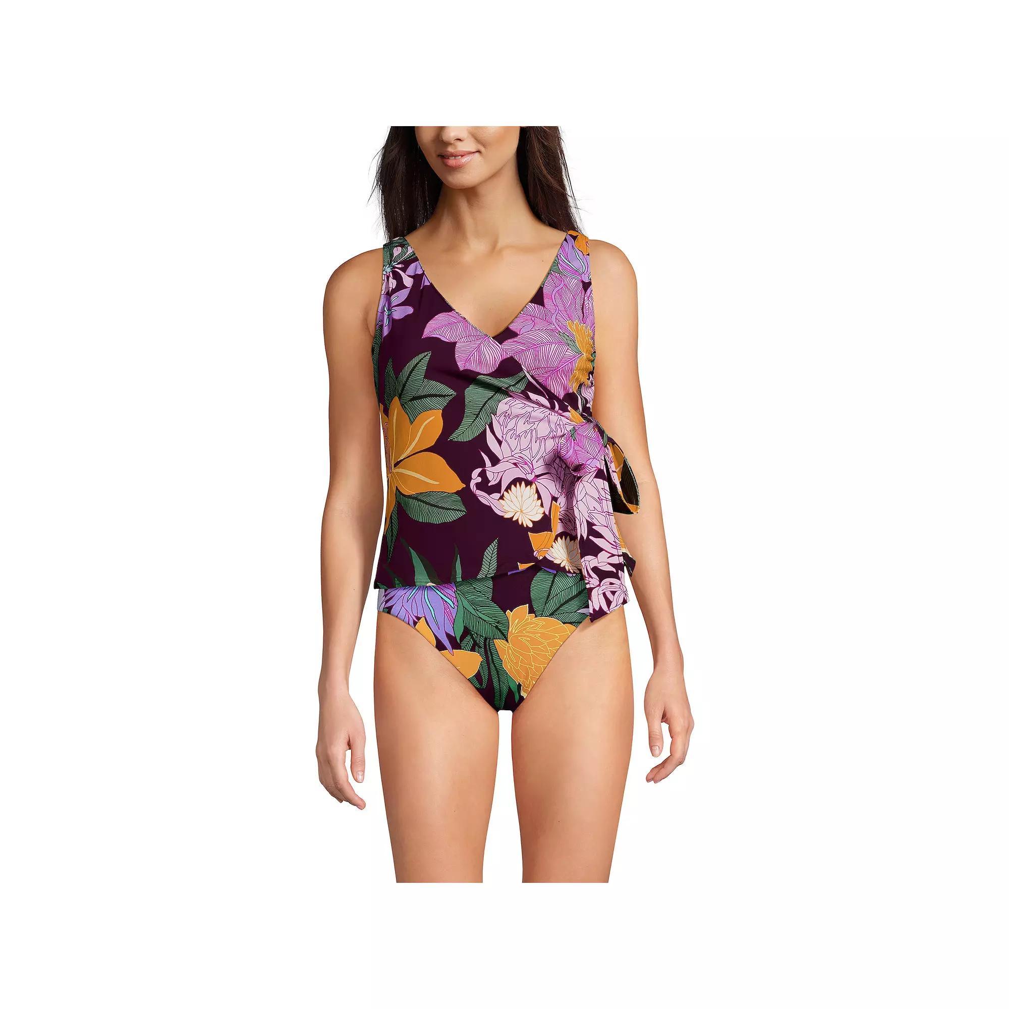 Step into style with this women's Lands' End tankini swimsuit top.Click on this WOMEN'S GUIDE to find the perfect fit and more!Step into style with this women's Lands' End tankini swimsuit top. Click on this WOMEN'S GUIDE to find the perfect fit and more!FEATURES Chlorine-resistant Soft bra cups Moderate coverage UPF 50 sun protection Tie closure Sleeveless Fully lined Unlined gusset Wireless Surplice necklineFIT & SIZING Non-adjustable strapsFABRIC & CARE Nylon, spandex Polyester, spandex lining Hand wash Imported Size: 10. Color: Dark Wine Floral. Gender: female. Age Group: adult.