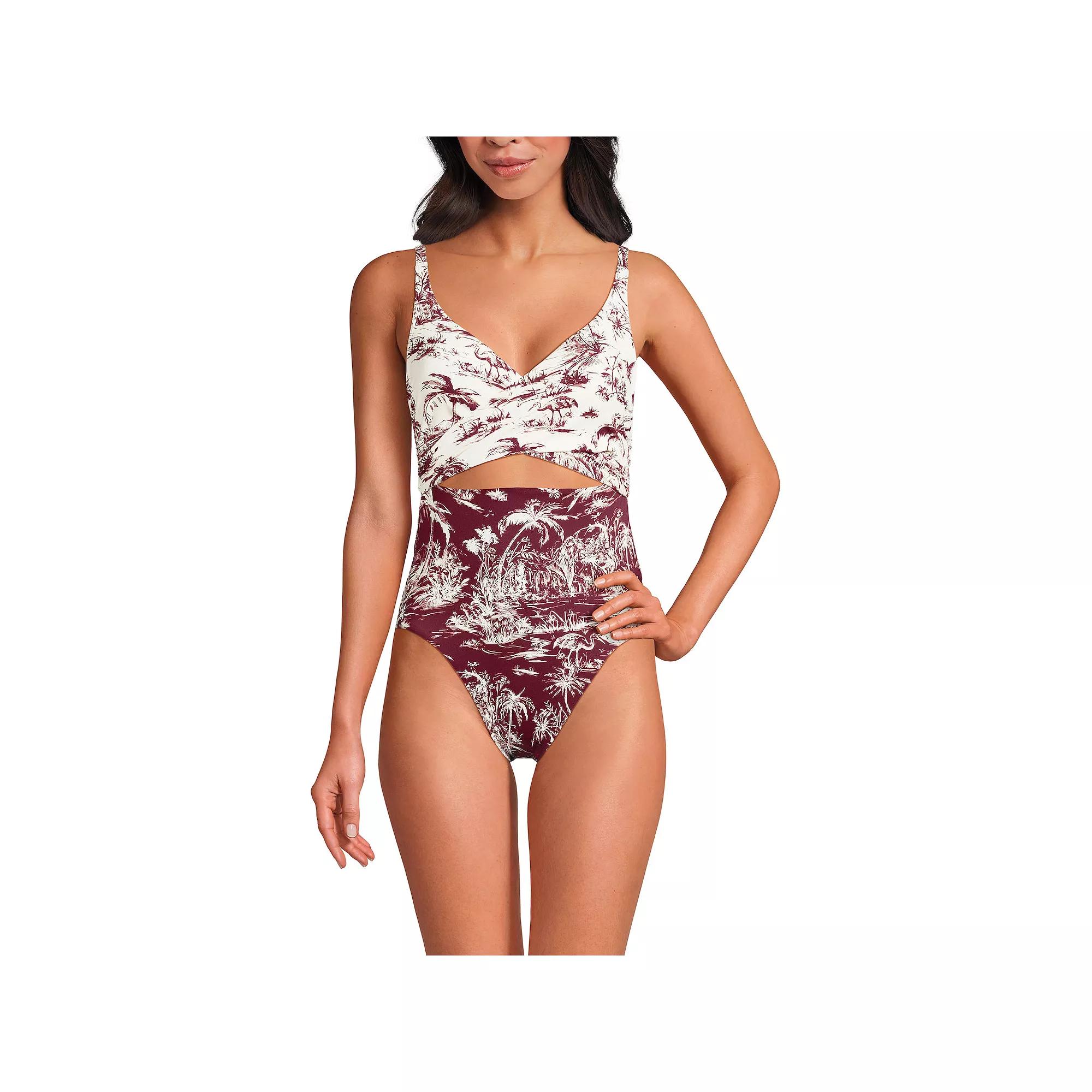 Embrace the sun with confidence in this stylish monokini from Lands End, designed to blend the flattering shape of a two-piece with the comfort of a one-piece. The high leg cut elongates your silhouette, while the adjustable straps and back tie ensure a secure fit, making it perfect for both lounging by the pool and making a splash at the beach. Click on this WOMENS GUIDE to find the perfect fit and more!Embrace the sun with confidence in this stylish monokini from Lands End, designed to blend the flattering shape of a two-piece with the comfort of a one-piece. The high leg cut elongates your silhouette, while the adjustable straps and back tie ensure a secure fit, making it perfect for both lounging by the pool and making a splash at the beach. Click on this WOMENS GUIDE to find the perfect fit and more!FEATURES Chlorine-resistant Soft bra cups Moderate coverage UPF 50 sun protection Sleeveless Wireless V-neck Elongates the legs with the least amount of coverage Functional back tie adjusts for the perfect fit Front and back cutout with wrap detail fixed at the sidesFIT & SIZING Available in long torso Adjustable shoulder strapsFABRIC & CARE Nylon, spandex Hand wash Imported Size: 18 LONG. Color: Emerald Petunia. Gender: female. Age Group: adult.