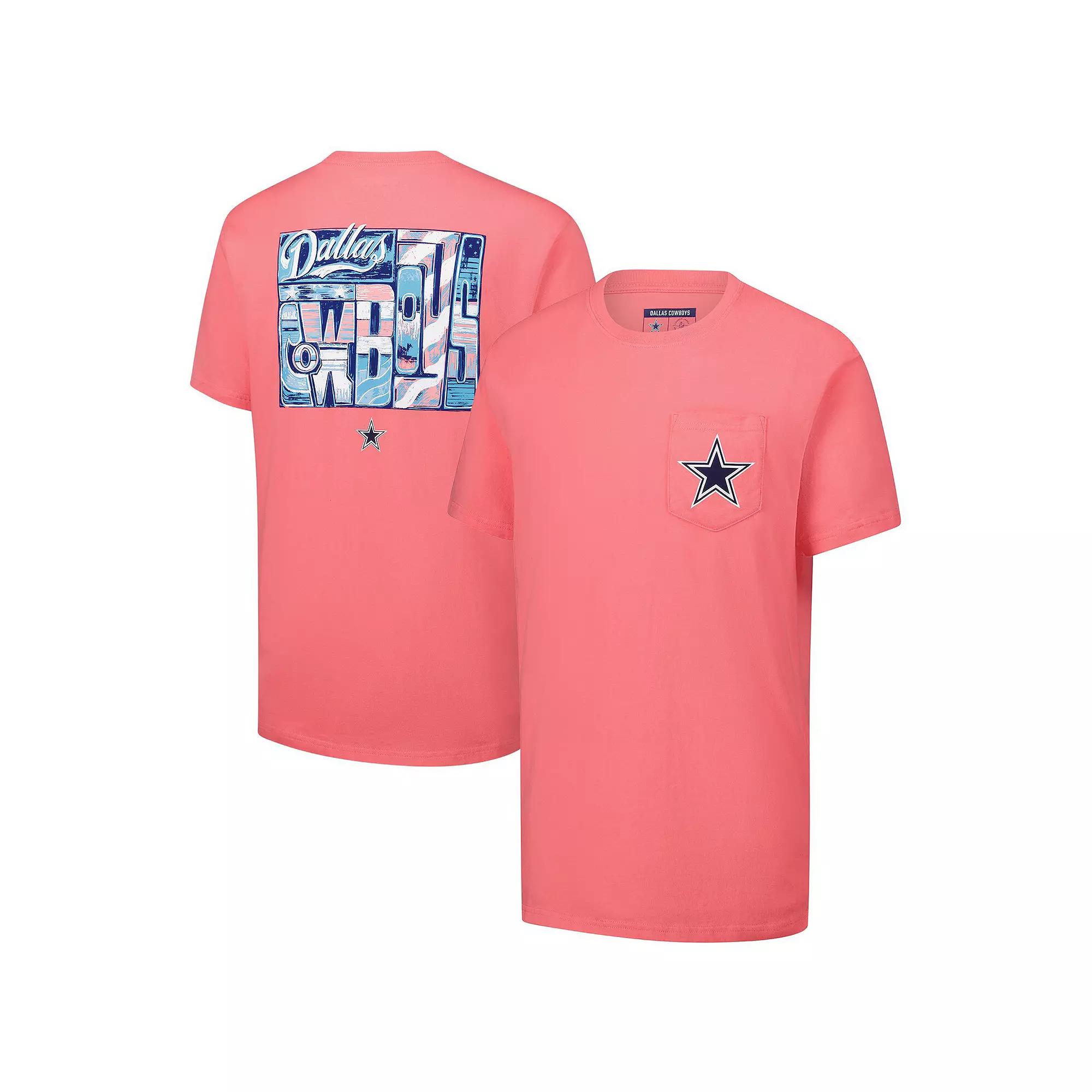 Display your Dallas Cowboys spirit with a touch of folksy charm in this Lauren James Americana T-Shirt. This cheerfully designed tee features hand-drawn team name artwork printed on the back and the franchise's iconic logo screen-printed on the chest pocket. Its classic relaxed fit and 100% cotton construction offer a comfortable and breathable feel, perfect for game day or any casual occasion.Display your Dallas Cowboys spirit with a touch of folksy charm in this Lauren James Americana T-Shirt. This cheerfully designed tee features hand-drawn team name artwork printed on the back and the franchise's iconic logo screen-printed on the chest pocket. Its classic relaxed fit and 100% cotton construction offer a comfortable and breathable feel, perfect for game day or any casual occasion.PRODUCT FEATURESClassic relaxed fitCrew neckShort sleeveTeam logo screen printed on chest pocketImportedOfficially licensedMaterial: 100% CottonBrand: Lauren JamesMachine wash, tumble dry lowHand-drawn team name artwork printed on back Color: Pink O. Gender: female. Age Group: adult.