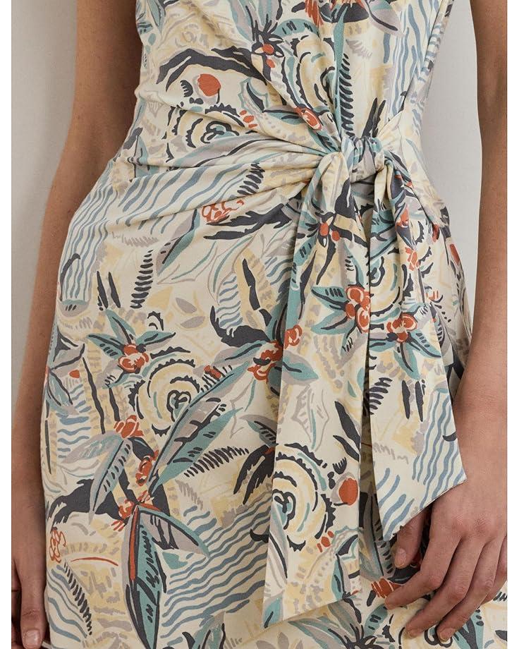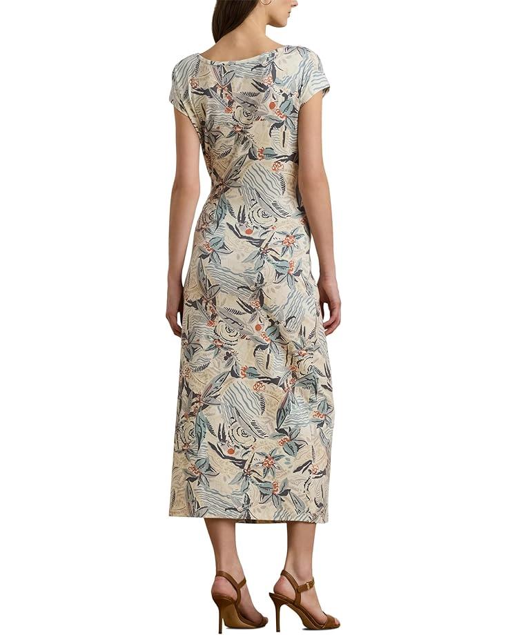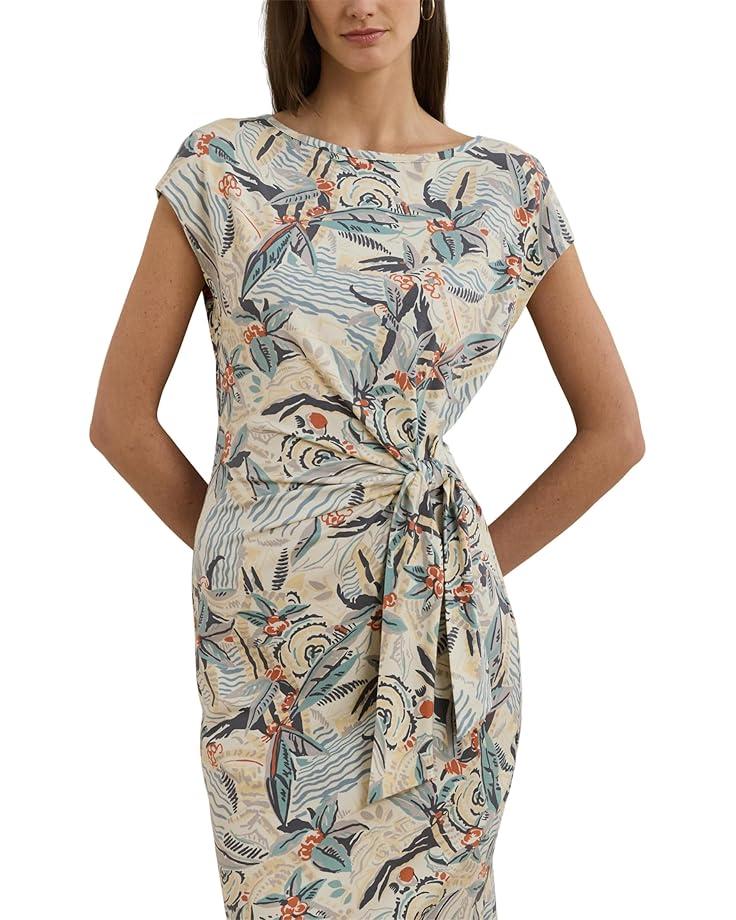 Women's Lauren Ralph Lauren Tie-Front Print Boatneck Midi Dress
