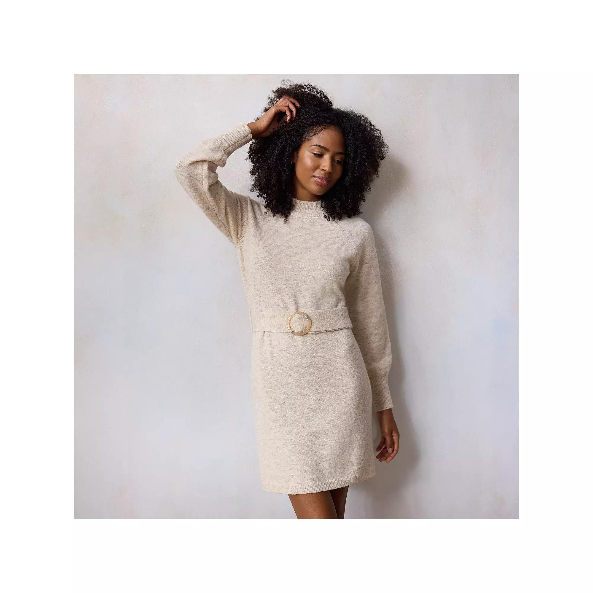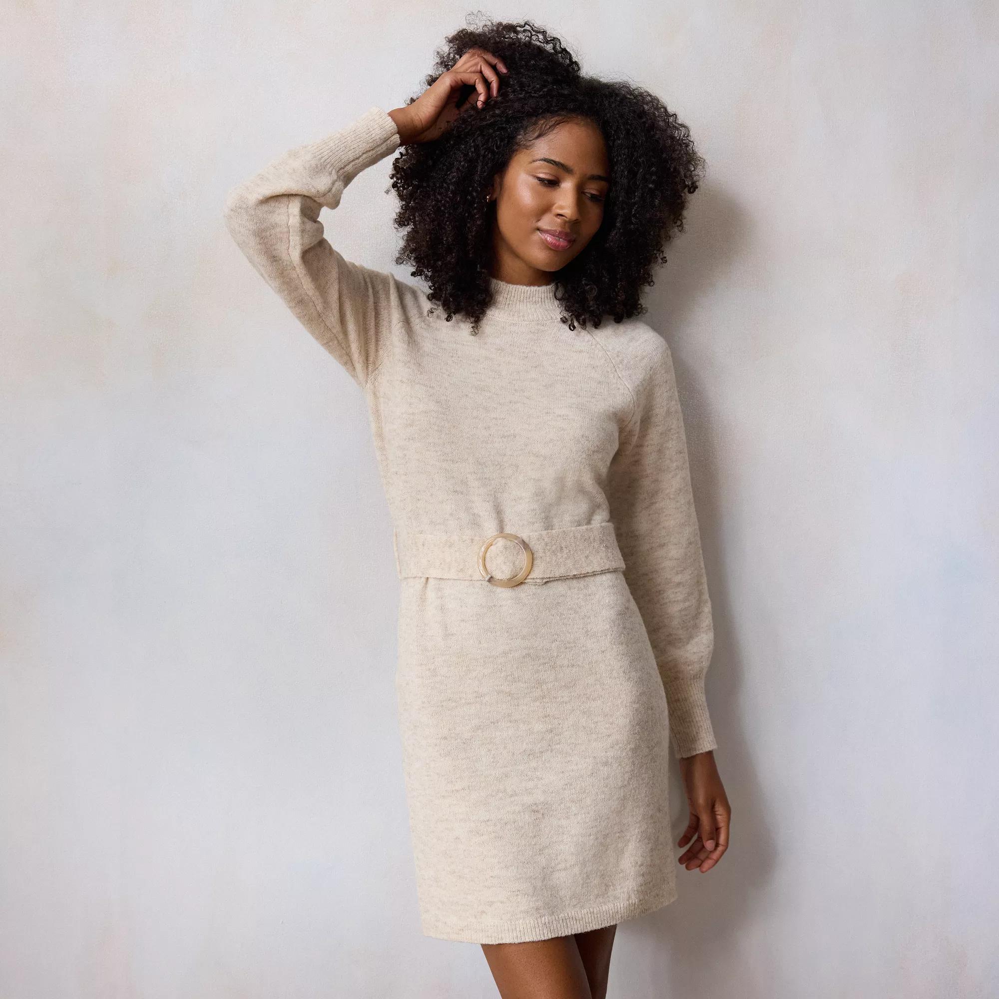 Easily add style to your wardrobe with this womens LC Lauren Conrad belted mini mock neck sweater dress.Click on this WOMENS GUIDE to find the perfect fit and more! Easily add style to your wardrobe with this womens LC Lauren Conrad belted mini mock neck sweater dress.Click on this WOMENS GUIDE to find the perfect fit and more! FEATURES Sweaterdress styling Straight hem No closure - pullover styling Ribbed cuffs Long sleeves Coordinating belt MockneckFIT & SIZING Regular fit 34-in. length Midi length hits below the kneeFABRIC & CARE 55% recycled polyester, 29% polyester, 13% acrylic, 3% spandex Machine wash Imported Size: Medium. Color: Cloudy. Gender: female. Age Group: adult.