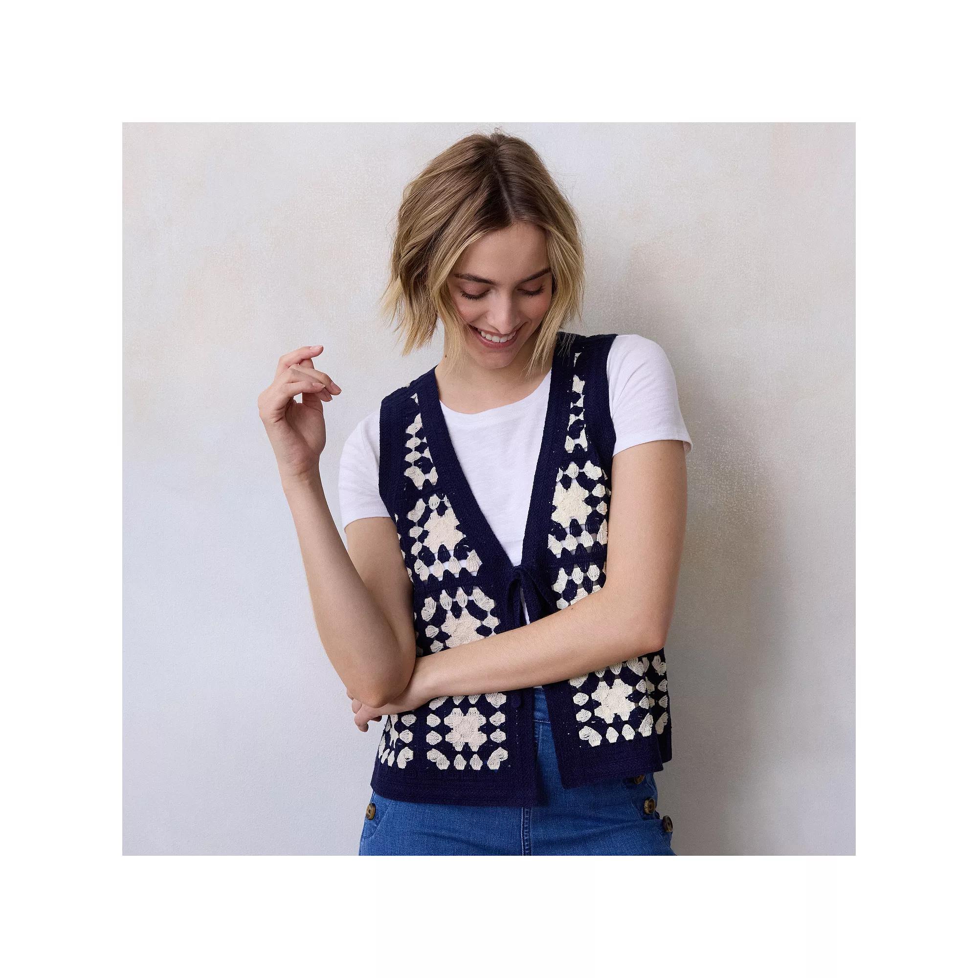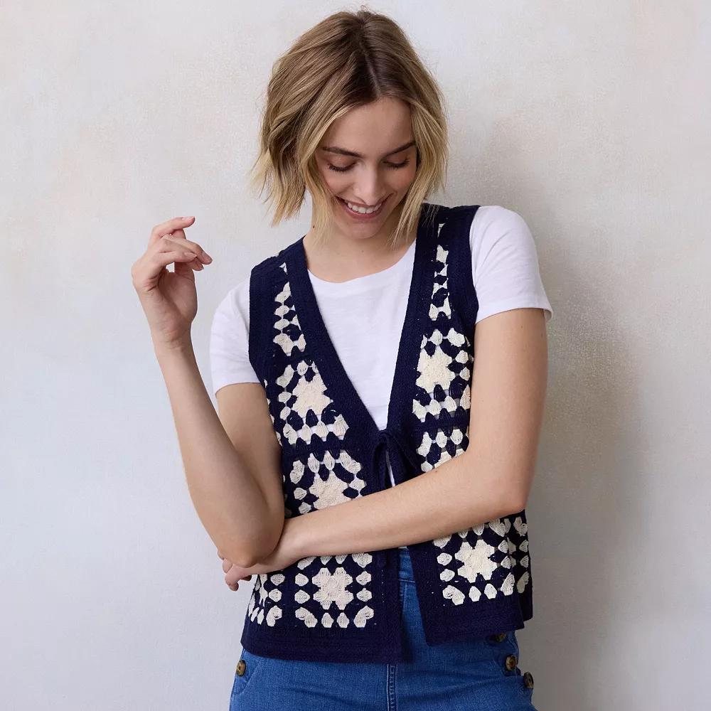 Elevate your wardrobe with a charming crochet vest from LC Lauren Conrad, designed to effortlessly layer over your favorite tees. Its relaxed fit, chic neckline, and open-front style make it perfect for a casual day out or a cozy night in, adding a touch of whimsy to any outfit.Click on this WOMEN'S GUIDE to find the perfect fit and more!Elevate your wardrobe with a charming crochet vest from LC Lauren Conrad, designed to effortlessly layer over your favorite tees. Its relaxed fit, chic neckline, and open-front style make it perfect for a casual day out or a cozy night in, adding a touch of whimsy to any outfit.Click on this WOMEN'S GUIDE to find the perfect fit and more!FEATURES Splitneck Sleeveless Pull-on styling Straight hemFIT & SIZING Regular fit 21 1/4-in. length from shoulder to hemFABRIC & CARE Acrylic Machine wash Imported Size: Xxl. Color: Seattle Navy. Gender: female. Age Group: adult.