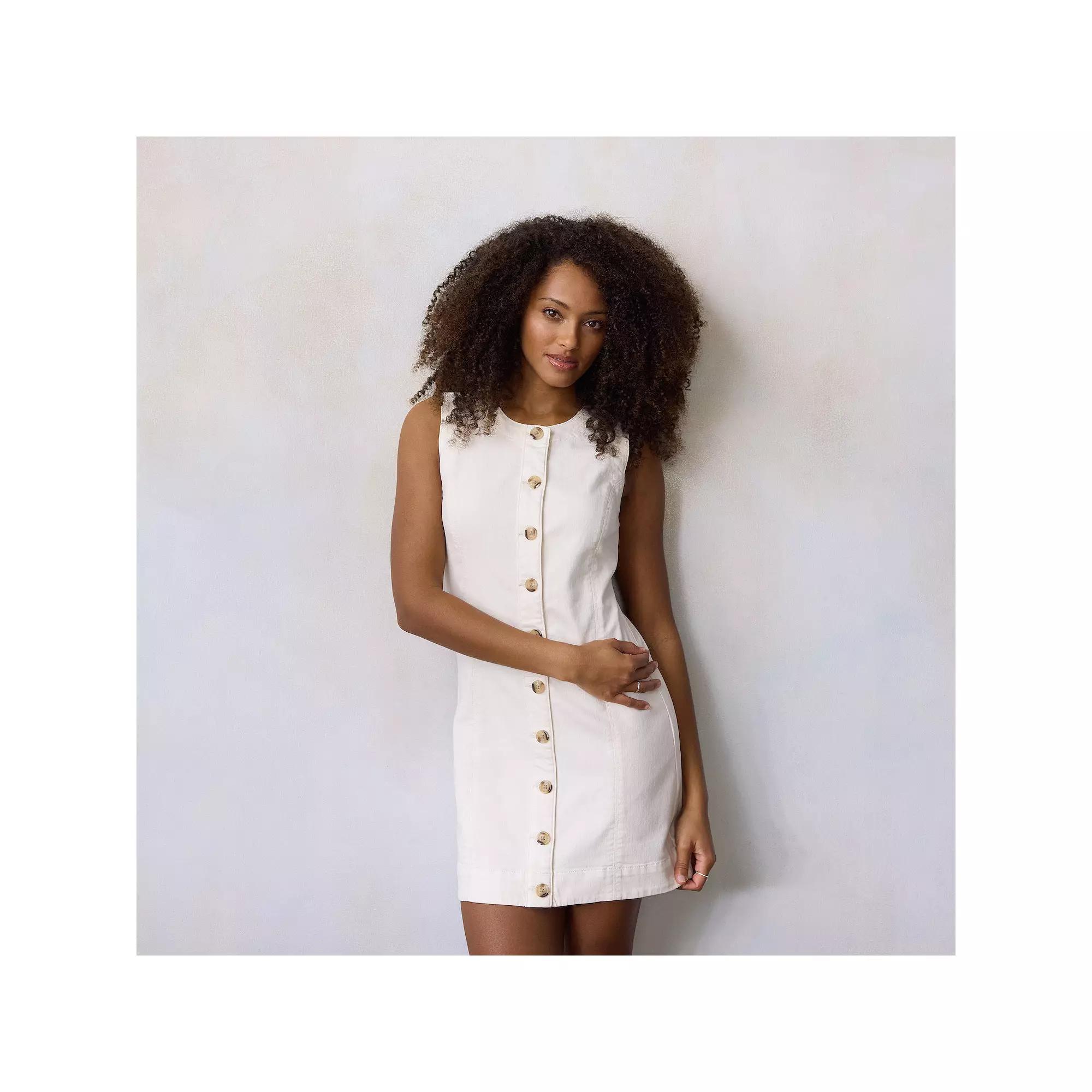 Get ready to twirl your way through sunny days in this charming button front mini that's effortlessly chic and oh-so-comfortable. Perfect for any occasion, the LC Lauren Conrad dress combines playful style with a touch of sophistication, ensuring you'll turn heads whether you're brunching with friends or hitting a summer festival. Click on this WOMEN'S GUIDE to find the perfect fit and more! - https://www.kohls.com/feature/womens-fit-guide.jsp. FEATURES: Soft handfeel construction, Stylish button front design. FIT & SIZE: Regular fit, Mini length hits at the thigh, 35 1/2-in. length from shoulder to hem, Asymmetrical hem. MATERIAL & CARE: Cotton, lyocell, spandex, Machine wash and tumble dry low. DETAILS: Button front closure, U-neckline, Sleeveless, Imported. RESPONSIBLE Supports more sustainable cotton farming, Tested for harmful substances, STANDARD 100 by OEKO-TEX® CERTIFIED, Certification No. 2017OK1349, Testing Institute: AITEX®, www.oeko-tex.com/standard100 - https://www.oeko-tex.com/en/our-standards/oeko-tex-standard-100. Size: X Small. Color: Ivory Silk. Gender: female. Age Group: adult. Material: NONE.