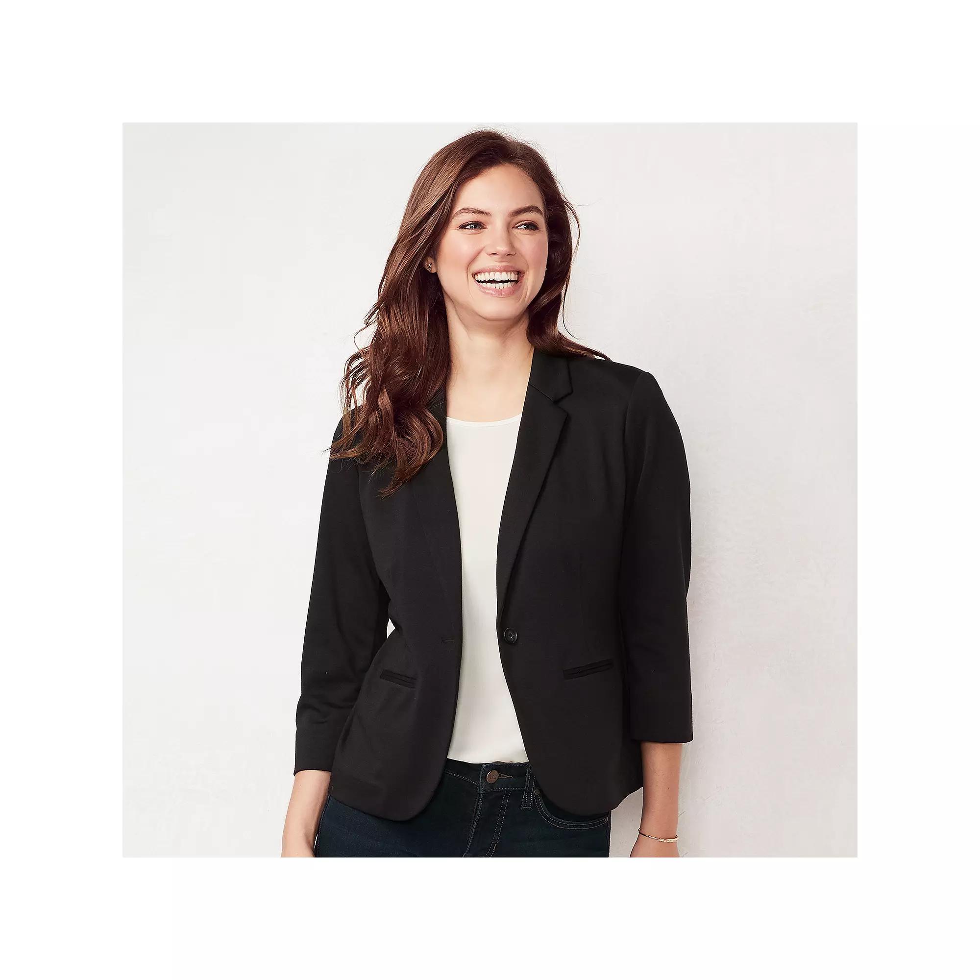 A fitted design and an open front make this petites LC Lauren Conrad blazer a stylish layering piece. A fitted design and an open front make this petites LC Lauren Conrad blazer a stylish layering piece. Watch the product video here. Ponte construction 3/4-length sleeves with rolled cuffs 2 faux pockets Button frontFIT & SIZING Fitted designFABRIC & CARE Imported Dry clean Polyester, rayon, spandex: Cotton, polyester Size: XXL Petite. Color: Black. Gender: female. Age Group: adult.