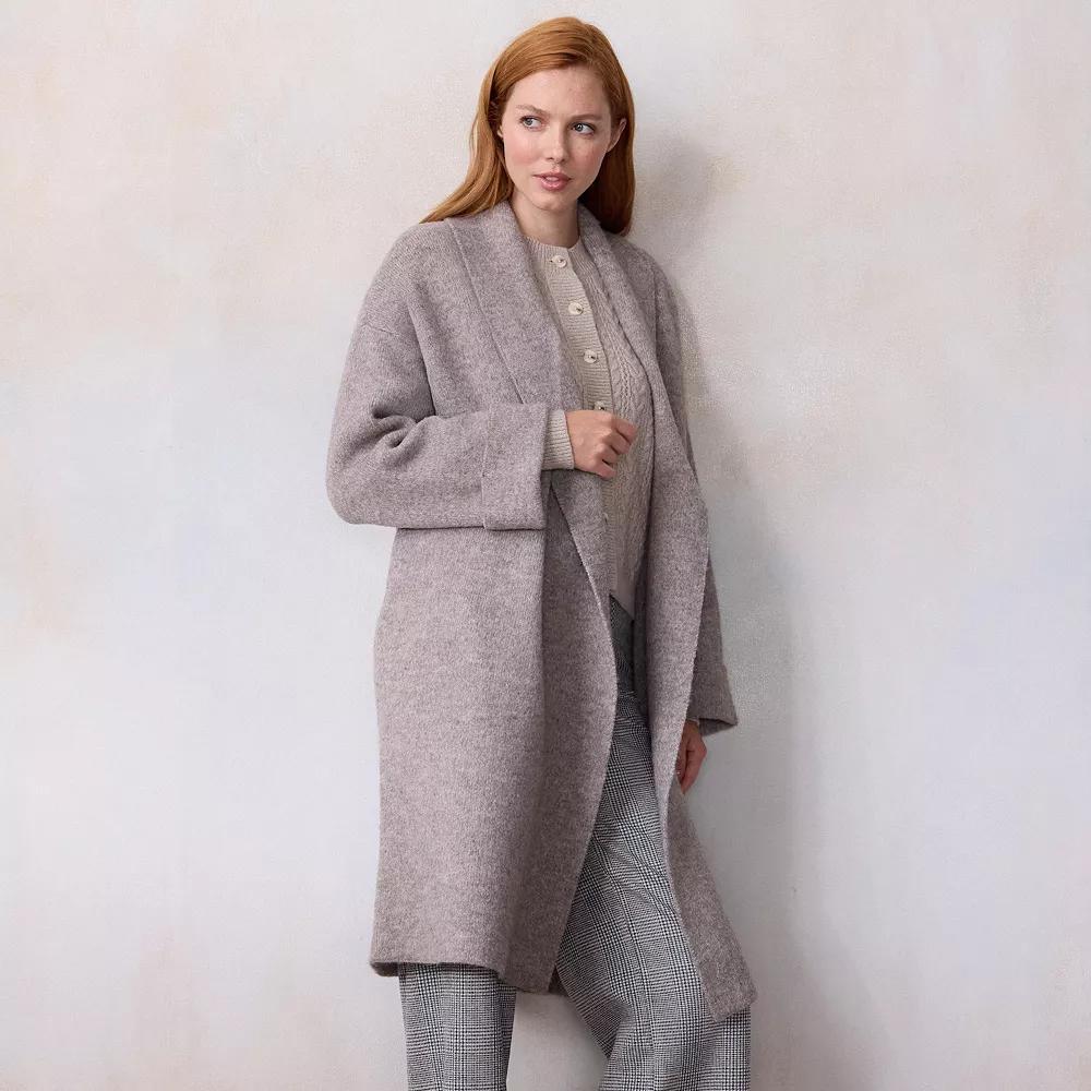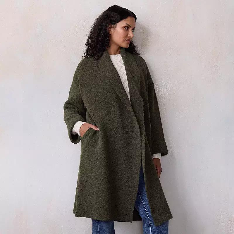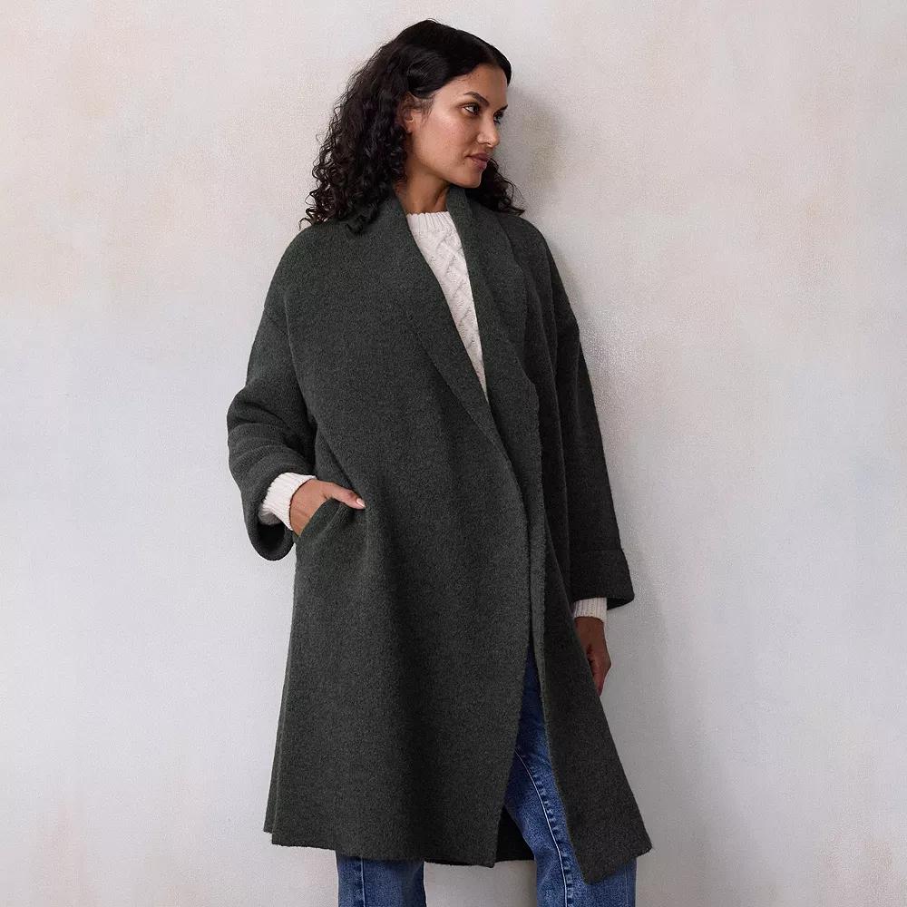 Update your outerwear collection with this women's LC Lauren Conrad long sweater coat. Click on this WOMEN'S GUIDE to find the perfect fit and more! - https://www.kohls.com/feature/womens-fit-guide.jsp. FEATURES: Detailing on sleeve, Heavyweight sweater: Seriously cozy and crafted for comfort with added structure and weight that’s perfect for colder days. FIT & SIZE: Regular fit, 39 1/2-in. length, Straight hem. DETAILS: No closure - open front, Splitneck, Long rolled sleeves, Sewn-rolled cuffs, 2 side pockets, Imported. MATERIAL & CARE: Polyester, spandex, Machine wash. Size: X Large. Color: Olive. Gender: female. Age Group: adult. Material: OTHER MATERIAL.