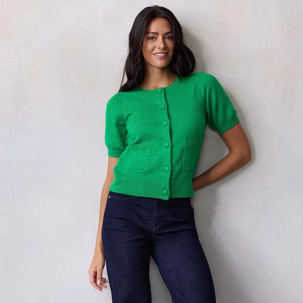 Elevate your wardrobe with this chic short sleeve cardigan from LC Lauren Conrad. Perfect for layering, it adds a touch of sophistication to any outfit, whether you're dressing up for brunch or keeping it casual for a day out. Click on this WOMEN'S GUIDE to find the perfect fit and more! - https://www.kohls.com/feature/womens-fit-guide.jsp. FEATURES: Short sleeve design for a relaxed fit, Lightweight fabric for comfortable layering. FIT & SIZE: 21-in from shoulder to hem, Straight hem, Women's Petite sizing, Lightweight sweater: A breezy essential with an easy fit, ideal for mild days or indoor comfort. DETAILS: Crewneck neckline, Short sleeves, Button front closure, Ribbed cuffs, Puffed sleeves, Front pockets. MATERIAL & CARE: Body: 55% cotton, 22% recycled polyester, 21% acrylic, 2% spandex, Jersey allover construction, soft handfeel, Machine wash delicate. RESPONSIBLE Supports more sustainable cotton farming, Contains recycled polyester. Size: XXL Petite. Color: Brisk Peri. Gender: female. Age Group: adult. Material: OTHER MATERIAL.