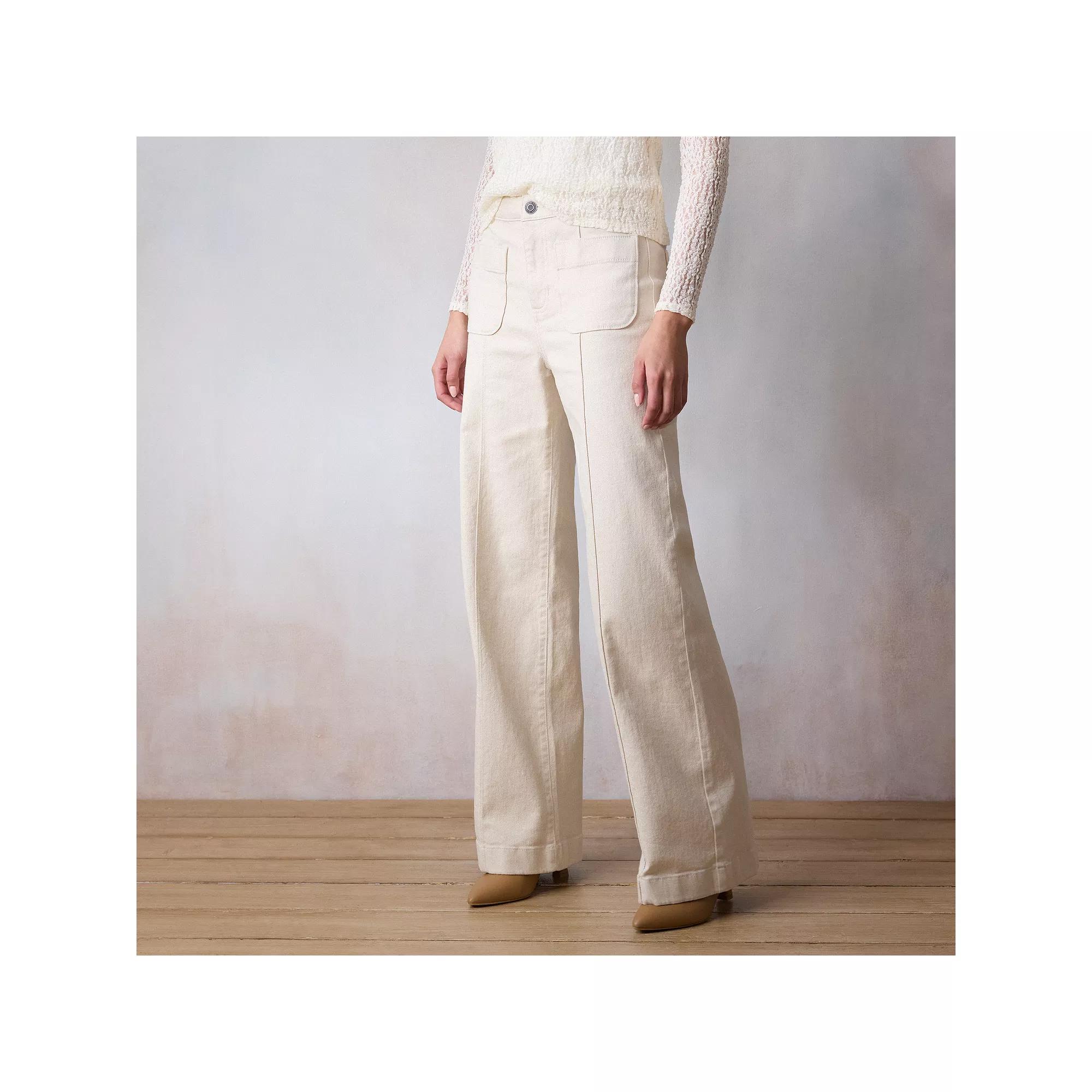 Find your perfect style with these women's super high-waist trouser jeans from LC Lauren Conrad, featuring a center seam design and comfortable patch pockets. Click on this WOMEN'S GUIDE to find the perfect fit and more! - https://www.kohls.com/feature/womens-fit-guide.jsp. FEATURES: Comfortable to wear, 1-button front, Stylish no-belt-loop design, 2 front patch pockets, 2 back patch pockets, Fashionable center leg seam, Roll-tab hem, Unlined. FIT & SIZING: High rise sits below the natural waistline, Relaxed fit through the hip and thigh, Short: 30-in. inseam, Average: 32-in. inseam, Long/tall (T/L): 34-in. inseam, Wide leg opening, 11-in. leg opening. FABRIC & CARE: Cotton, polyester, Lycra, Machine wash, Imported. Size: 10. Color: Lc Ecru Shine. Gender: female. Age Group: adult. Material: OTHER MATERIAL.
