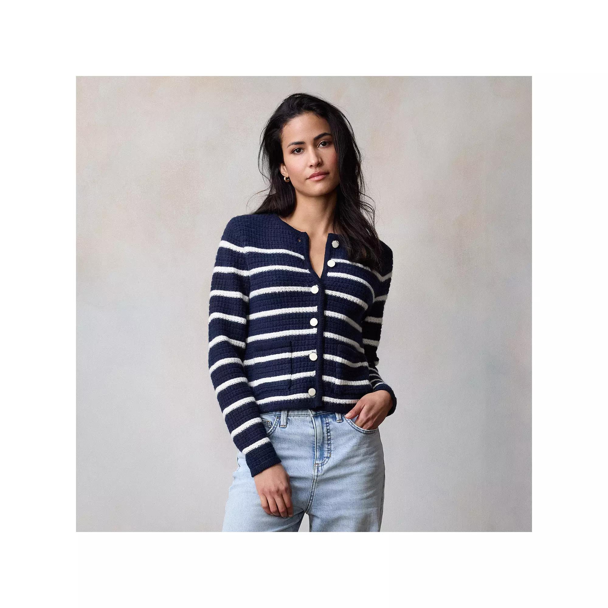 Add style to your wardrobe with this women's LC Lauren Conrad textured stitch crewneck cardigan. Click on this WOMEN'S GUIDE to find the perfect fit and more!Add style to your wardrobe with this women's LC Lauren Conrad textured stitch crewneck cardigan. Click on this WOMEN'S GUIDE to find the perfect fit and more!FEATURES Textured stitch construction 2 front pockets Straight hem Button closure Ribbed cuffs Long sleeves CrewneckFIT & SIZING Regular fit 21-in. lengthFABRIC & CARE Polyester, acrylic, nylon Machine wash Imported Size: Xxl. Color: Navy Basque Stripe. Gender: female. Age Group: adult.