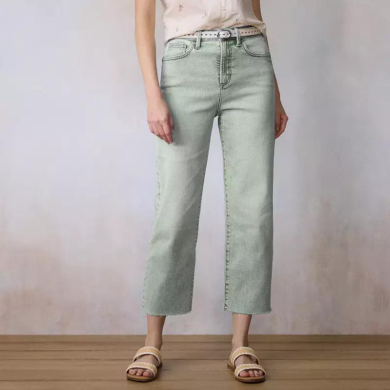 Step into effortless style with these LC Lauren Conrad jeans, featuring a straight leg and trendy raw hem that adds a touch of chic flair. Perfect for dressing up with a blouse or keeping it casual with a tee, these jeans are your versatile go-to for any occasion. Click on this WOMEN'S GUIDE to find the perfect fit and more! - https://www.kohls.com/feature/womens-fit-guide.jsp. FEATURES: Soft handfeel, Straight leg raw hem. FIT & SIZE: Relaxed fit: easy through hip & thigh for a comfortable non-restrictive feel, Relaxed fit through the hip and thigh, High-rise: sits at or slightly above the natural waist, Super high rise sits on the natural waistline, Petite: 25-in. inseam, Regular: 27-in. inseam, Long/tall (T/L): 29-in. inseam, 8 1/2-in. leg opening, Straight leg opening. MATERIAL & CARE: Cotton, polyester, lycra, Lining: cotton, lyocell, spandex, Machine wash and tumble dry low. DETAILS: 1-button front closure, 3 pockets at front, 2 pockets at back, Imported. RESPONSIBLE Supports more sustainable cotton farming, Tested for harmful substances, STANDARD 100 by OEKO-TEX® CERTIFIED, Certification No. 2021OK2154, Testing Institute: AITEX®, www.oeko-tex.com/standard100 - https://www.oeko-tex.com/en/our-standards/oeko-tex-standard-100. Size: 12. Color: Valor Green. Gender: female. Age Group: adult. Material: OTHER MATERIAL.