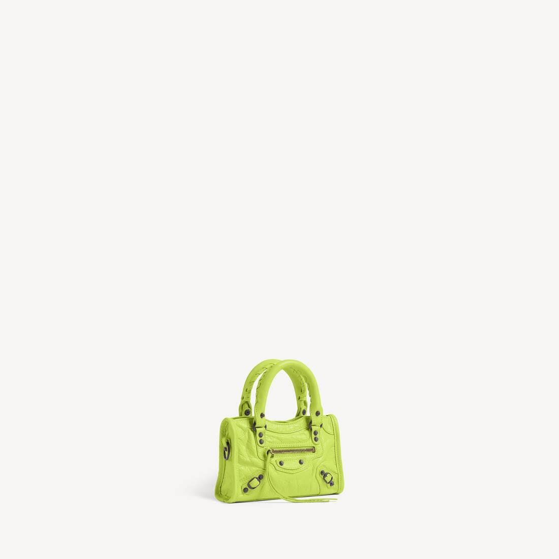 Le City Bag Nano in granny green Arena Storico lambskin, brass hardware