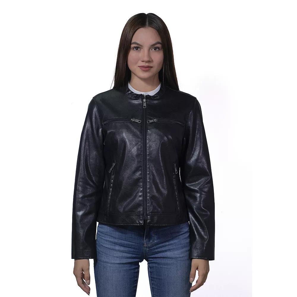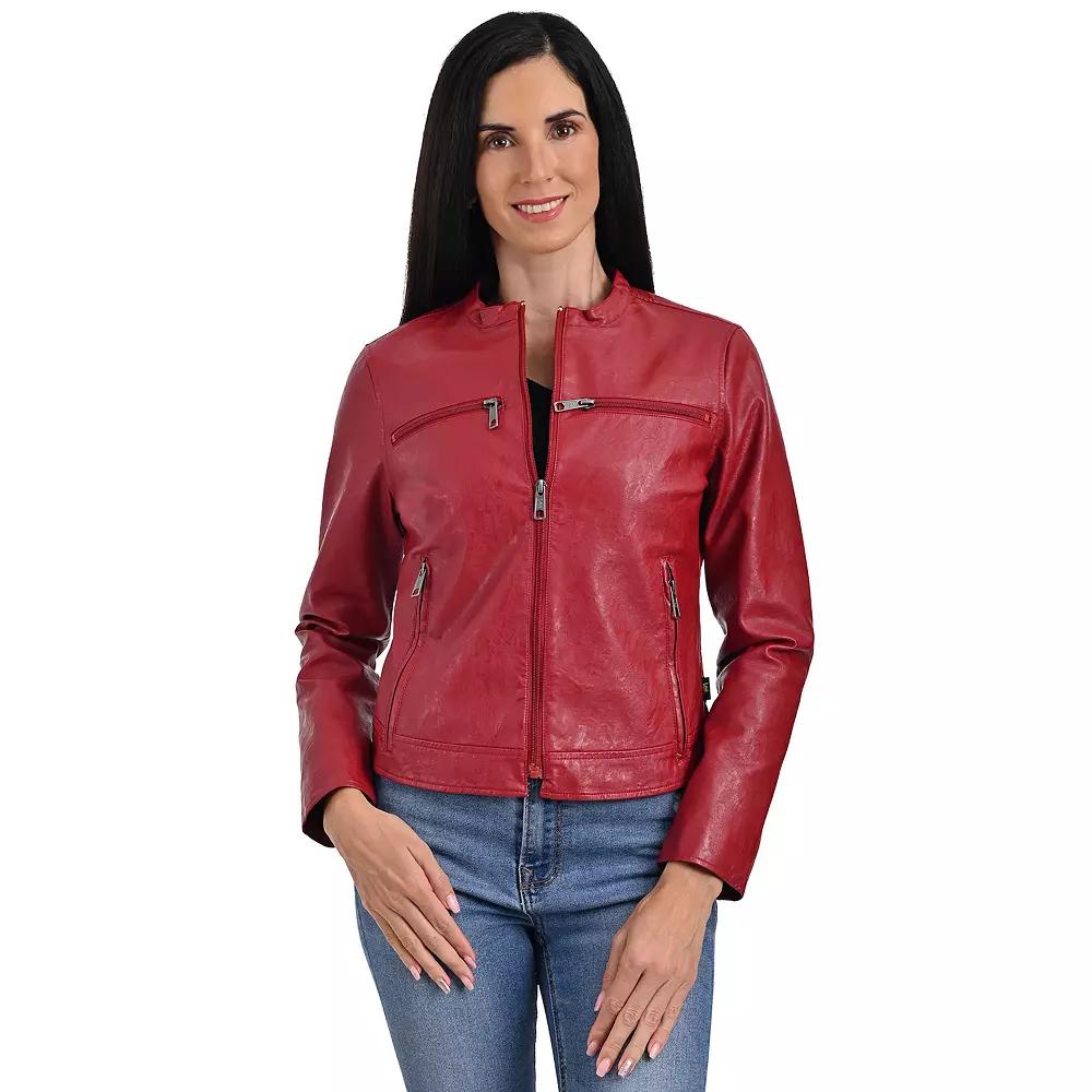 Add a layer of warmth but keep your style in this womens Lee faux leather cafe racer jacket. Click on this WOMENS GUIDE to find the perfect fit and more! Add a layer of warmth but keep your style in this womens Lee faux leather cafe racer jacket. Click on this WOMENS GUIDE to find the perfect fit and more! FEATURES Zipper closure Two horizontal pockets on the chest, two side hand pockets at the waist and one interior pocket Long sleeves Fully linedFIT & SIZING Classic cafe racer styled jacket with regular fit 24 1/2-in. length from shoulder to hem Designed to hit just below the waist MidweightFABRIC & CARE Polyester, polyurethane Dry clean Imported Size: Large. Color: Red. Gender: female. Age Group: adult.