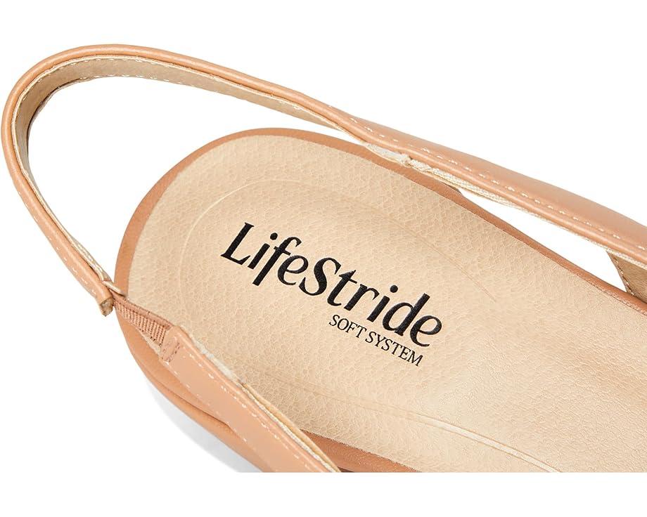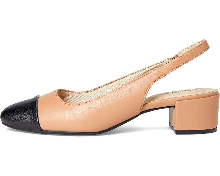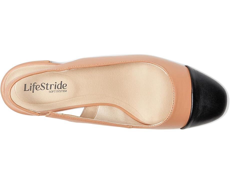 A timeless silhouette, updated for today. This comfortable, LifeStride® Becoming low slingback heels with contrasting cap toe design will be a new favorite. Faux leather or fabric upper with contrast round cap toes and slingback strap with built-in stretch. The Soft System® Comfort package provides all-day support, flex, and cushioning.