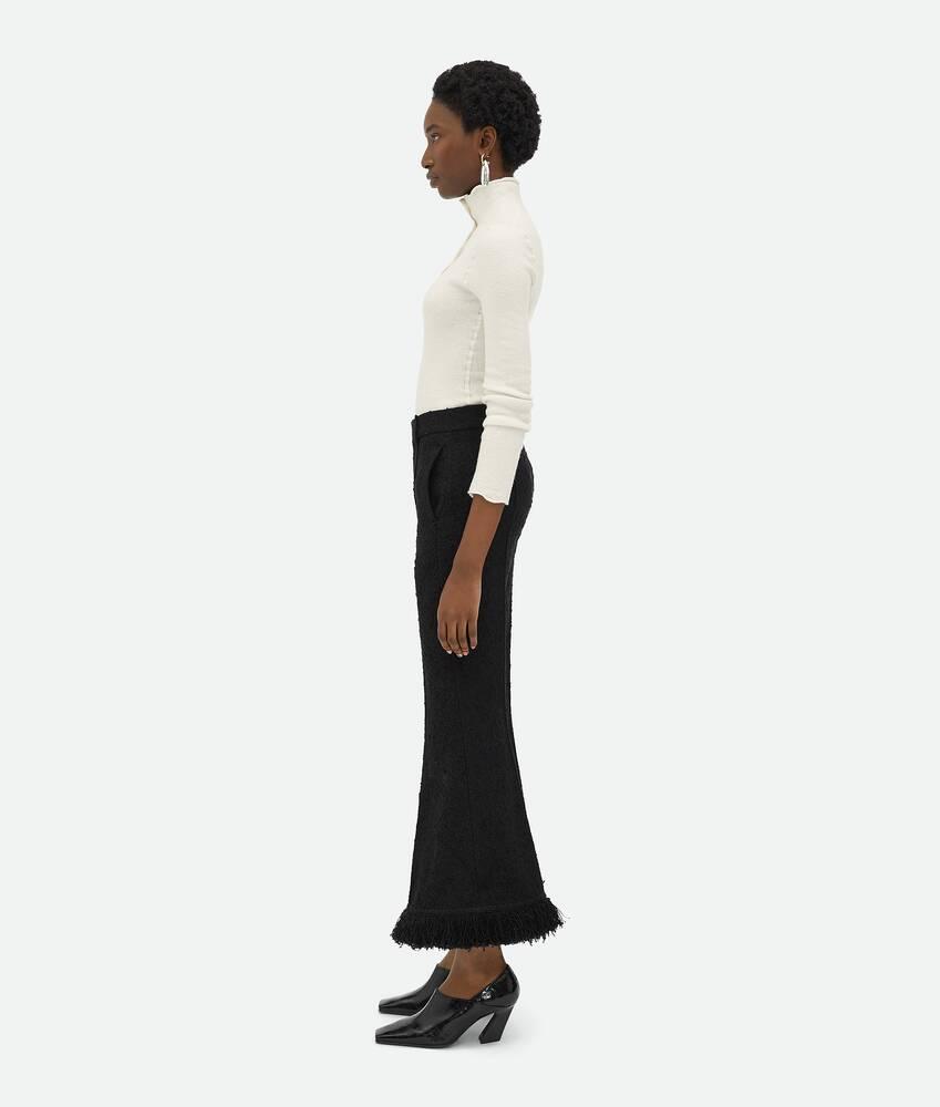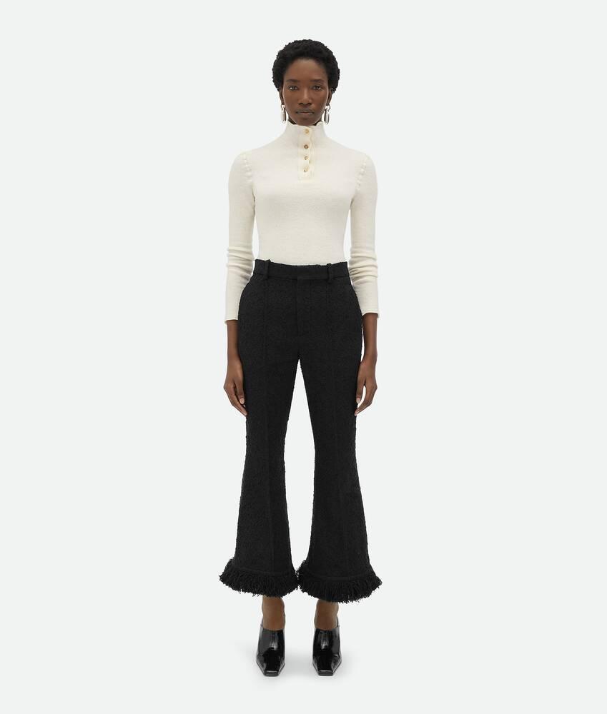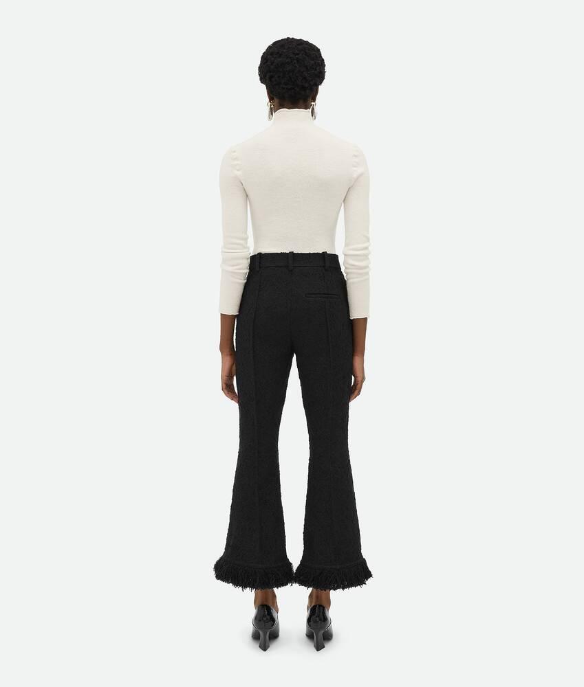 Women's Light Cotton Tweed Fringed Trousers in Black