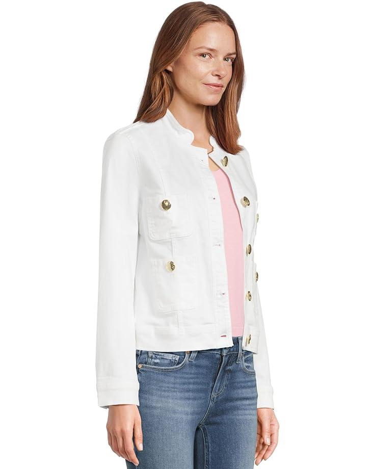 Offering a straight fit, the Lilly Pulitzer® Shepa Denim Jacket is perfect for styling up your outfits and looks. The buttoned front closure offers easy wear. This denim jacket is made from cotton and elastane blend fabric for all-day comfort. It is designed with long sleeves, buttoned cuffs, a high neckline, and a straight hem.