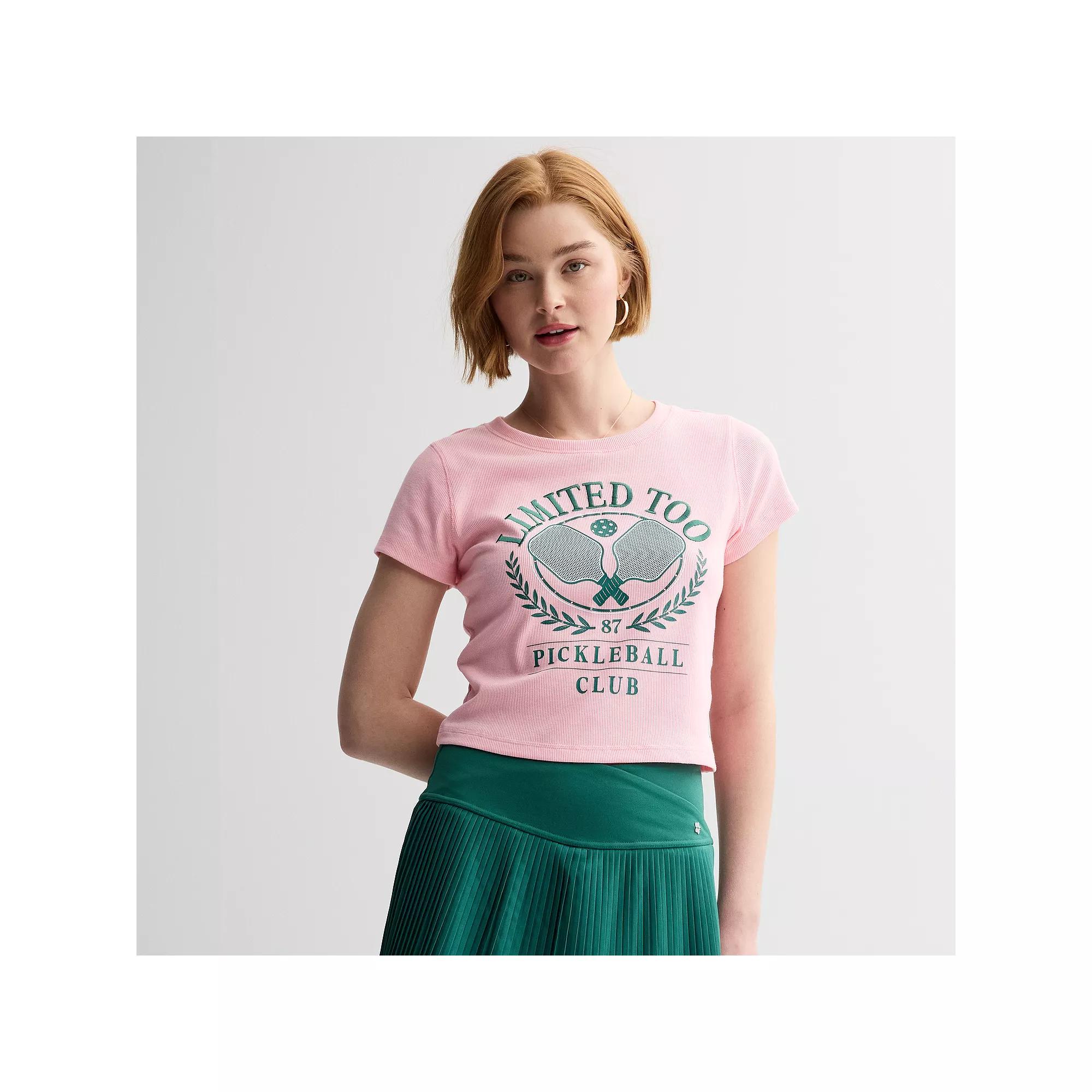 You're sure to love the look and comfort of this Women's Limited Too pickleball graphic tee.Click on this WOMEN'S GUIDE to find the perfect fit and more!You're sure to love the look and comfort of this Women's Limited Too pickleball graphic tee. Click on this WOMEN'S GUIDE to find the perfect fit and more!FEATURES No closure - pullover styling Crewneck Short sleeves Soft blended construction UnlinedFIT & SIZING Regular fitFABRIC & CARE Cotton, polyester, elastane Machine wash Imported Size: Small. Color: Pink. Gender: female. Age Group: kids.