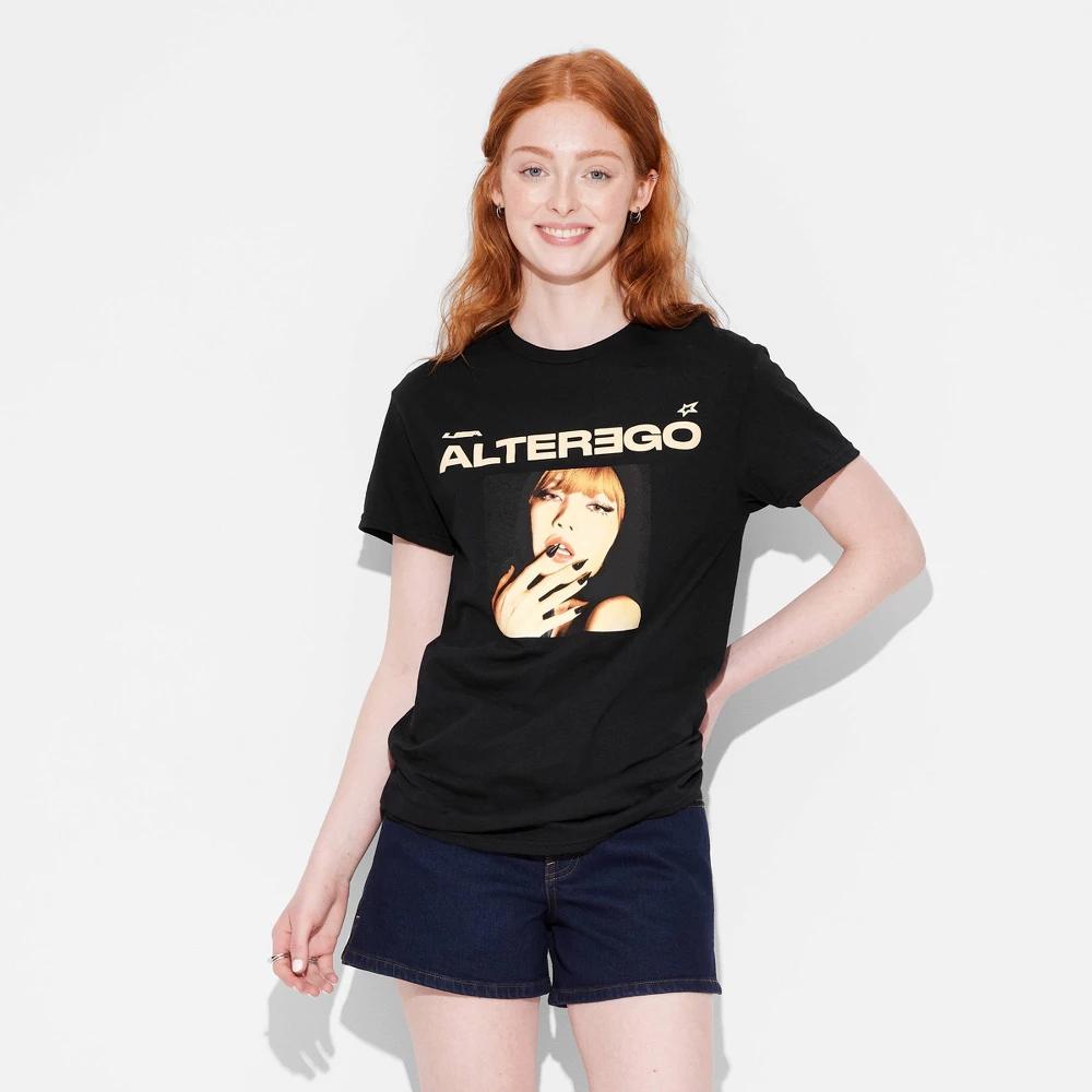 Check out the Womens Lisa Alter Ego KPOP Short Sleeve Oversized Graphic T-Shirt in black. This stylish tee features a bold Lisa alter ego print thats perfect for any KPOP fan. Made from lightweight jersey material, its super comfortable and breathable. The crew neckline and pullover style make it easy to wear, while the loose fit and below hip length add a trendy, relaxed vibe. Perfect for casual outings or lounging at home, this t-shirt is a must-have for your wardrobe.