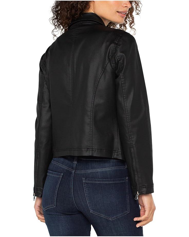 Step into the spotlight with the Liverpool Los Angeles™ 90's Zip Front Coated Black Denim Jacket, a statement piece that exudes elegance, making it perfect for any festivities on your calendar. The tailored silhouette of this standard-length jacket accentuates your figure while providing a comfortable and versatile fit. It features a mock neckline, long sleeves, a zipper-front closure, and two front pockets for added funtionality. Whether you're mingling at a cocktail party or attending a formal dinner, this piece effortlessly transitions from day to night, offering endless styling possibilities.
