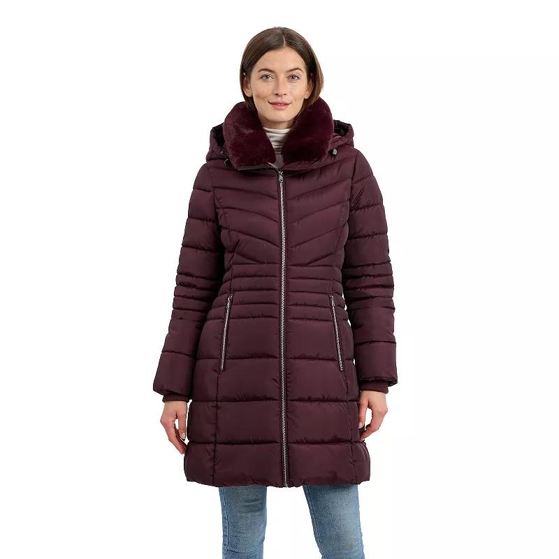 Elevate your winter wardrobe with this cozy walker puffer from London Fog, designed with a stylish faux fur collar that adds both warmth and elegance. Perfect for chilly outings, this coat combines functionality with a polished look, making it easy to layer over any outfit for an effortlessly chic appearance. Click on this WOMEN'S GUIDE to find the perfect fit and more! - https://www.kohls.com/feature/womens-fit-guide.jsp. FEATURES: Heavyweight warmth, Water-resistant technology. FIT & SIZE: Women's Reg, Comfortable semi fitted, Designed to hit above the knees, 37-in. length from shoulder to hem. DETAILS: Zipper closure, Removable hood, Long sleeves, Elastic cuffs, 2 Zip pockets at front below waist, Imported. MATERIAL & CARE: Woven, soft to touch, Polyester, Faux fur: Polyester; Knit cuffs: Acrylic, polyester, elastine, Product contains faux fur, Machine wash and tumble dry low. Size: X Large. Color: Black Cherry. Gender: female. Age Group: adult.