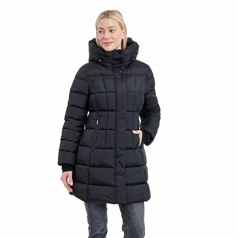Stay cozy and stylish this season with this delightful puffer coat featuring a plaid-lined hood that's perfect for those brisk days. With thumbholes for extra warmth and handy zippered pockets to keep your essentials secure, you'll be ready to take on anything while looking effortlessly chic. Click on this WOMEN'S GUIDE to find the perfect fit and more! - https://www.kohls.com/feature/womens-fit-guide.jsp. FEATURES: Extra warmth with thumbholes, Hood with plaid lining, Zippered pockets, Heavyweight insulation, Water-resistant technology. FIT & SIZE: Regular fit, 33 1/2-in. length from shoulder to hem, Designed to hit above the knees. MATERIAL & CARE: Body: 100% polyester, Trim: 85% polyester, 7% wool, 4% acrylic, Fully lined, Machine wash. DETAILS: Snap & zipper front closure, Attached hood, Long sleeves, Thumb holes at cuffs, 2 zippered pockets, Imported. Size: X Large. Color: Black. Gender: female. Age Group: adult. Material: NONE.