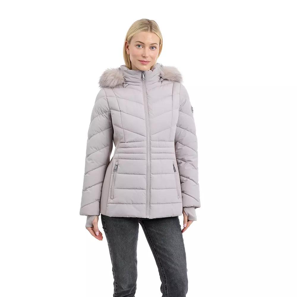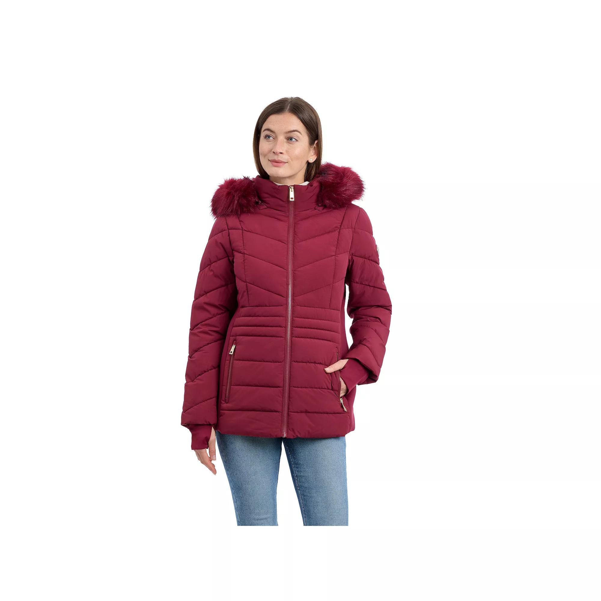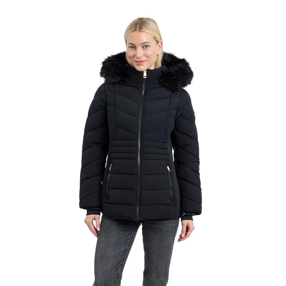 Stay warm and stylish with this versatile short active puffer from London Fog, perfect for your daily adventures, whether you're strolling through the park or navigating your favorite shopping spots. With its functional design and chic silhouette, this coat effortlessly balances comfort and trend, making it an essential addition to your wardrobe. Click on this WOMEN'S GUIDE to find the perfect fit and more! - https://www.kohls.com/feature/womens-fit-guide.jsp. FEATURES: Short active puffer versatile for walking, shopping, etc, Heavyweight warmth, Water-resistant technology. FIT & SIZE: Women's Reg, Semi fitted, Designed to hit just below the waist, 29-in. length from shoulder to hem. DETAILS: Zipper closure, Removable hood with faux-fur trim, Long sleeves, Thumb holes at cuffs, 2 Zip pockets at front below waist, Imported. MATERIAL & CARE: Woven, soft to the touch, Shell: Polyester; Side panels and undersleeves: Polyester, spandex, Faux fur trim: Modacrylic, acrylic, polyester, Product contains faux fur, Machine wash and tumble dry low. Size: Large. Color: Black. Gender: female. Age Group: adult.