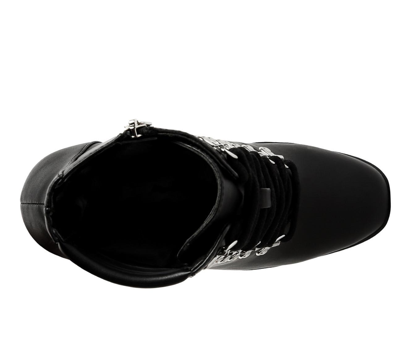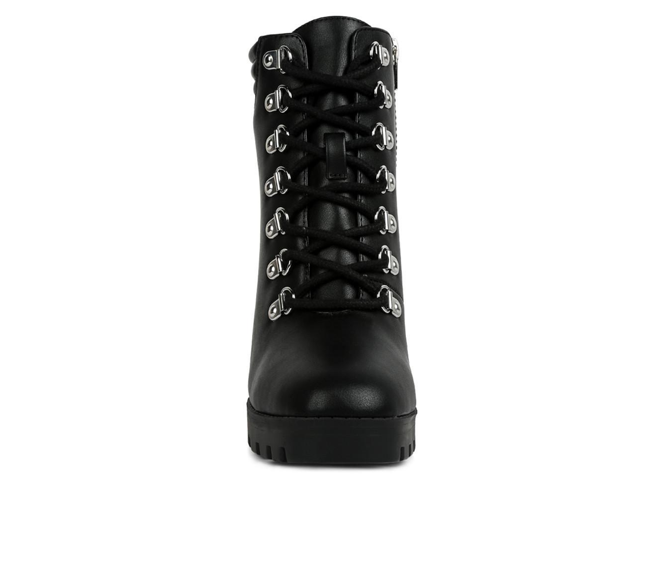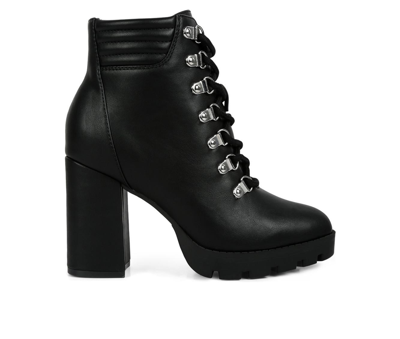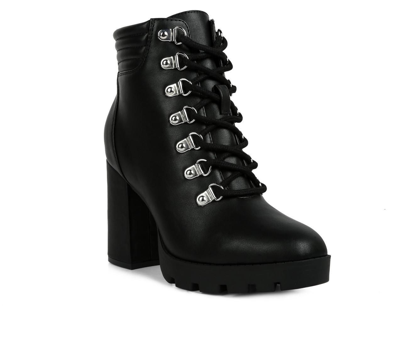 Be party ready in our Lace Up Block Heel Boots. These women boots have a sturdy lug sole and metallic eyelet detail, making you look like a quintessential diva. These lace up ankle boots are sure to bedazzle everyone with just a look. Pair them up with leather pants or a dress, these block heel boots will stop any party the moment you arrive, killing everyone softly with just one look. A lightly padded insole is truly a bliss for your feet.