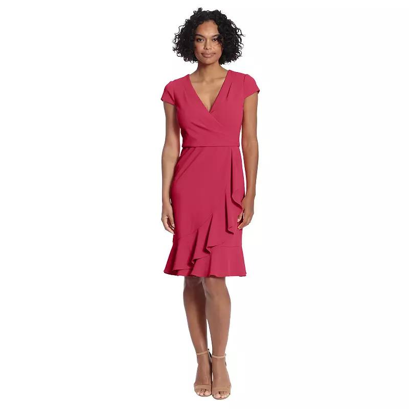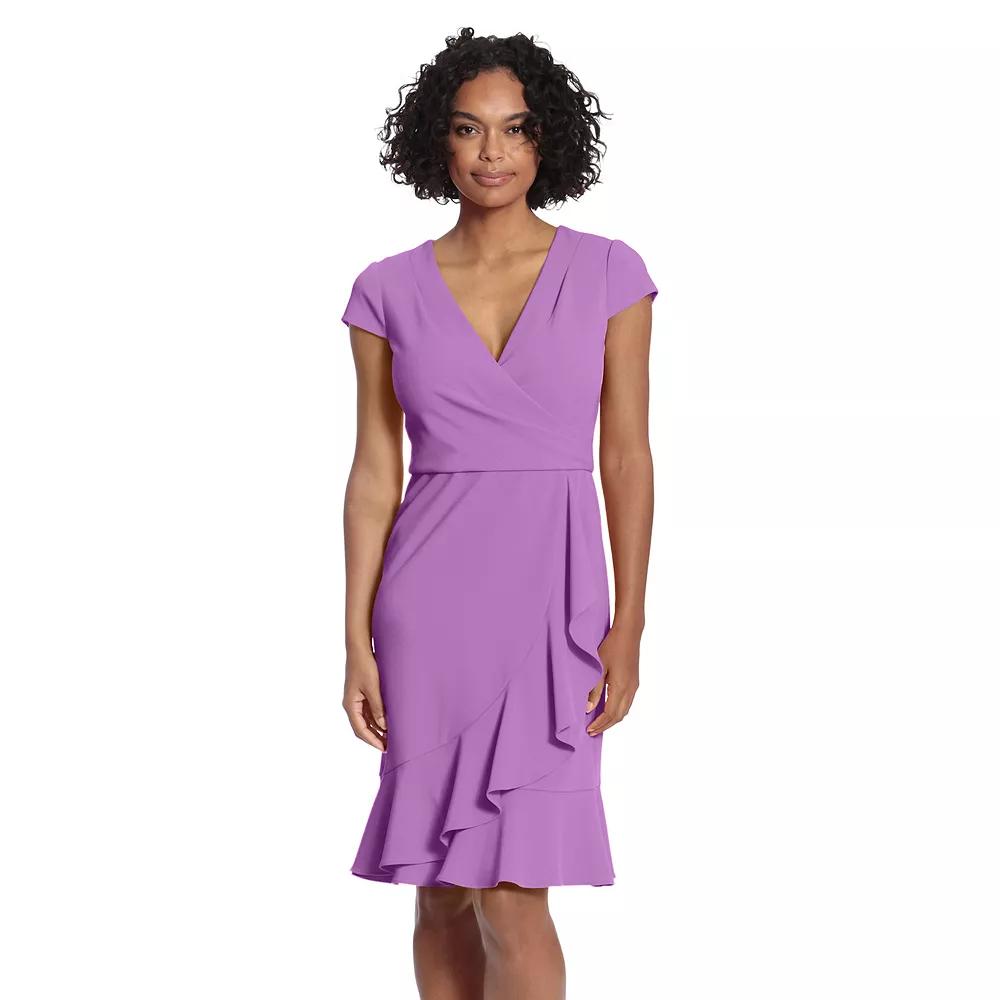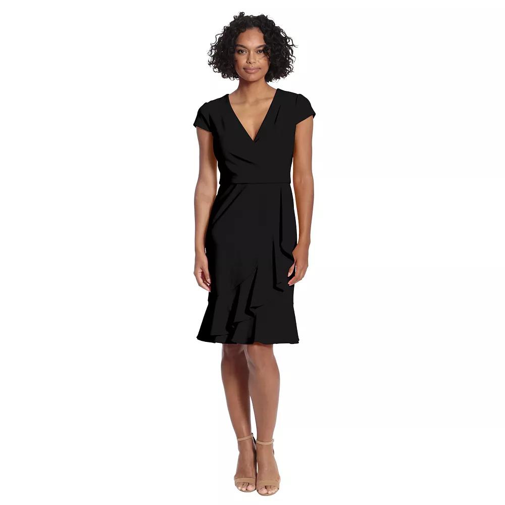 Arrive in style when you rock this women's ruffle faux-wrap dress from London Times. Finding the perfect fit and size for women's clothing requires basic measurements of your chest, waist, hips and inseam. Use this guide to learn more about sizing and everything Kohl's has to offer in women's fashion. - https://www.kohls.com/feature/womens-fit-guide.jsp. Surplice neckline, Cap sleeves, Ruffled skirt, Unlined, No pockets. FIT & SIZING: 41 1/2-in. approximate length from shoulder to hem, Faux-wrap silhouette, Zipper closure. FABRIC & CARE: Polyester, spandex, Machine wash, Imported. Color: Black. Gender: female. Age Group: adult. Material: POLY BLEND.