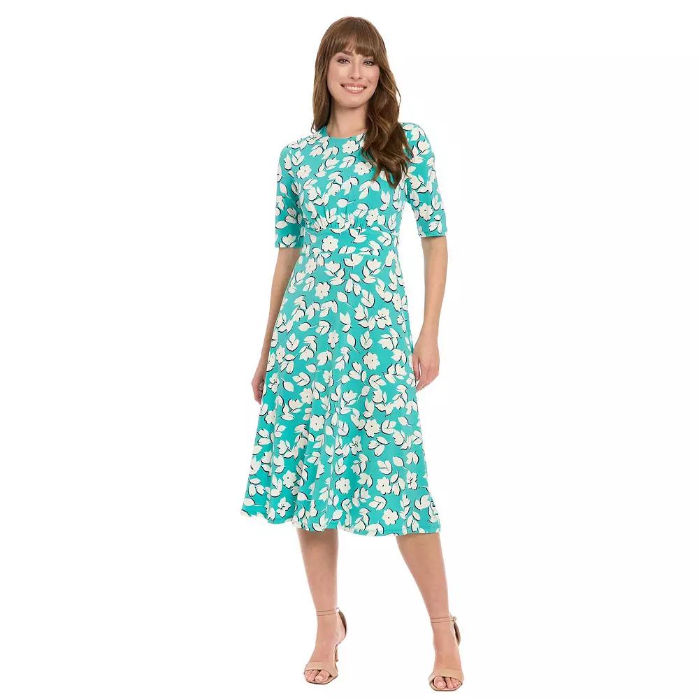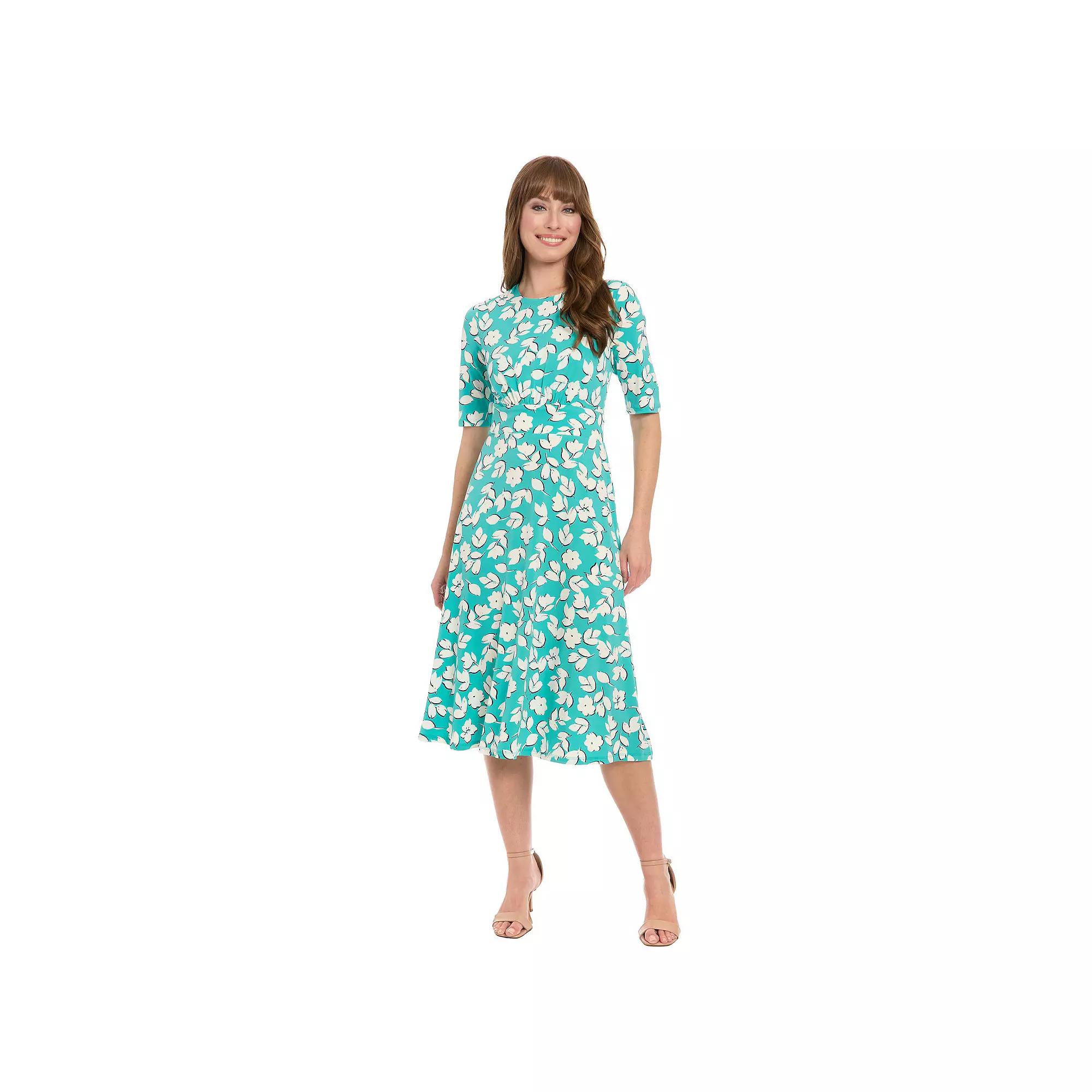 Take the stress out of finding the perfect dress with this women's printed midi a-line dress from London Times. Take the stress out of finding the perfect dress with this women's printed midi a-line dress from London Times.Finding the perfect fit and size for women's clothing requires basic measurements of your chest, waist, hips and inseam. Use this guide to learn more about sizing and everything Kohl's has to offer in women's fashion. Crewneck Elbow length sleeves Inset waist Jersey construction No pockets UnlinedFIT & SIZING 45-in. length from shoulder to hem A-line silhouette Zipper closureFABRIC & CARE Polyester, spandex Machine wash Imported Size: 10. Color: Blue Ivory. Gender: female. Age Group: adult.