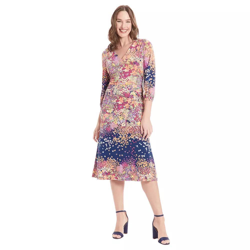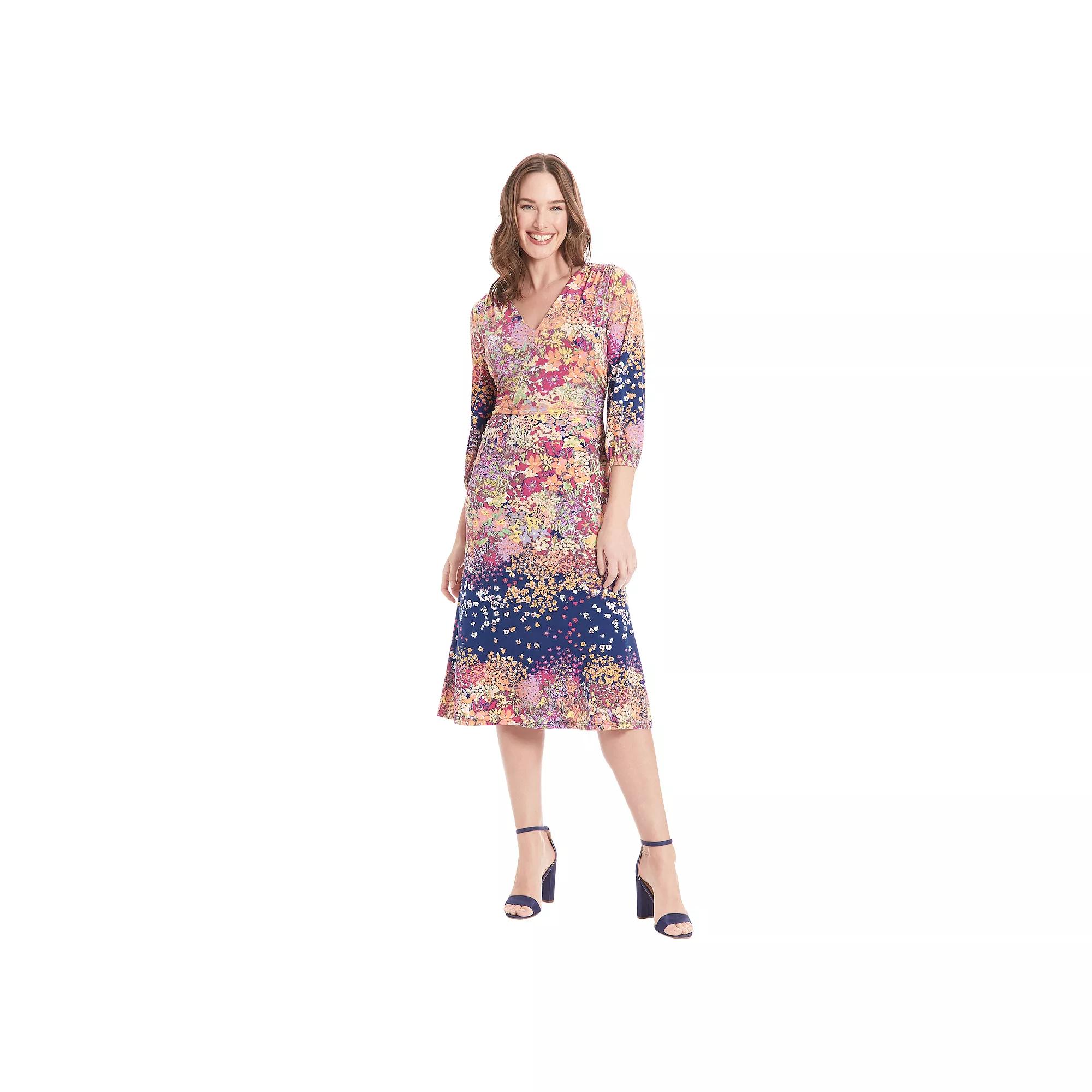 Elevate your dress collection with this Women's London Times V-Neck 3/4 Bishop Sleeve Cinched Midi Dress.Click on this WOMEN'S GUIDE to find the perfect fit and more! Elevate your dress collection with this Women's London Times V-Neck 3/4 Bishop Sleeve Cinched Midi Dress.Click on this WOMEN'S GUIDE to find the perfect fit and more! FEATURES V-neck 3/4-length sleeves Bishop sleeves Elastic cuffs Zipper back Cinched waist Floral meadow print Matte jersey construction Straight hem Partially linedFIT & SIZING Fit & flare silhouette 45 3/4-in. length from shoulder to hem Midi length hits below the kneeFABRIC & CARE Polyester, spandex Lining: polyester Machine wash and tumble dry low Imported Size: 8. Color: Multi Floral. Gender: female. Age Group: adult.