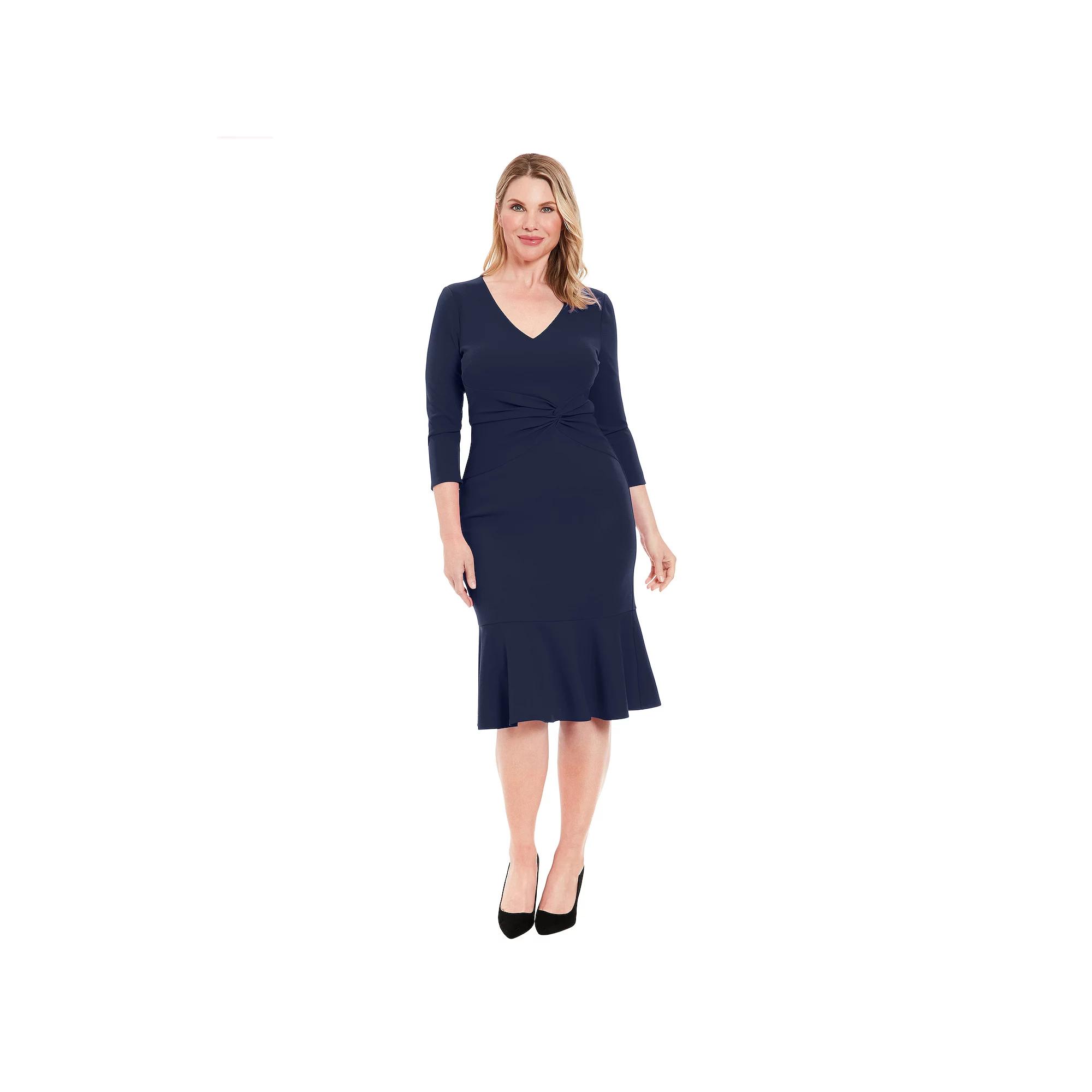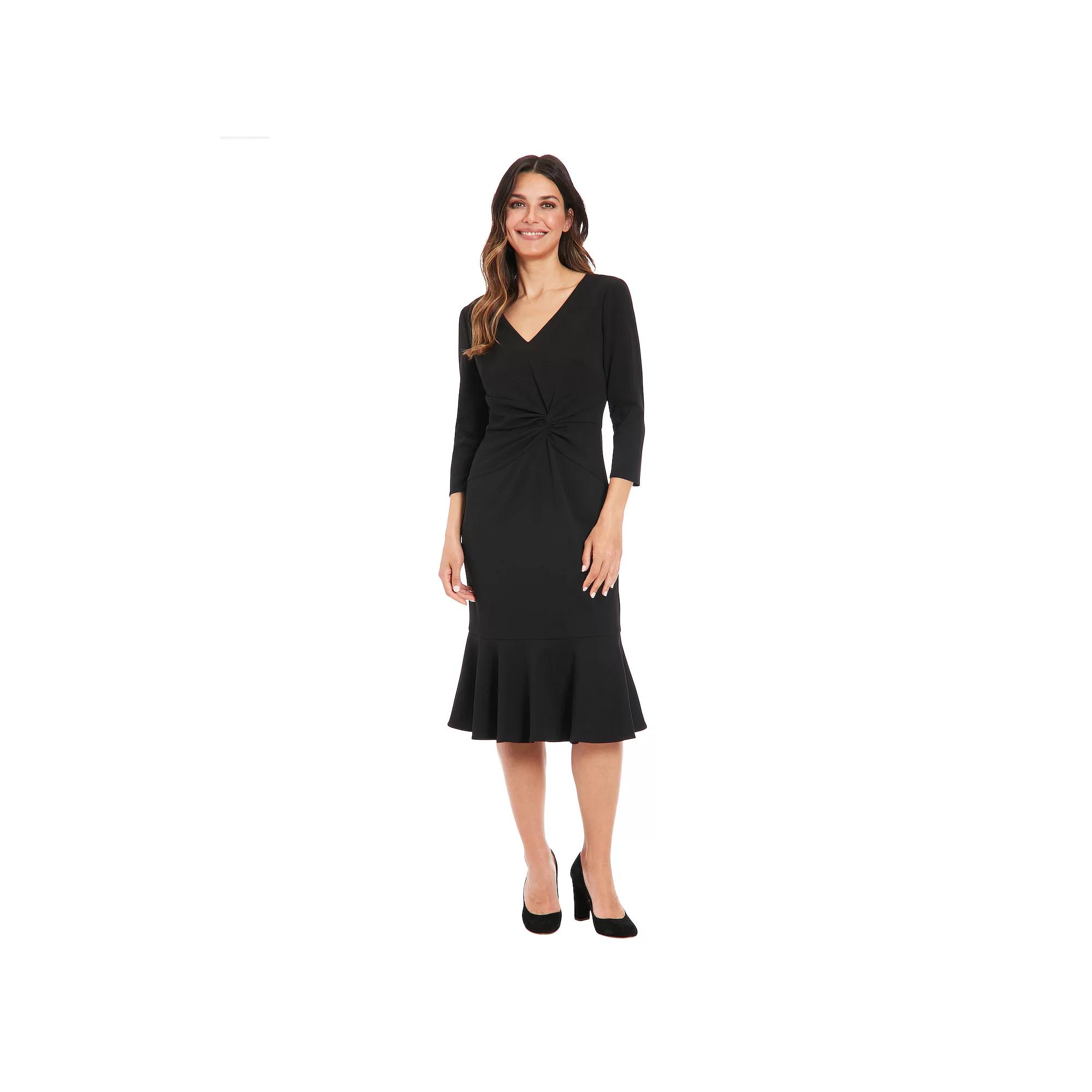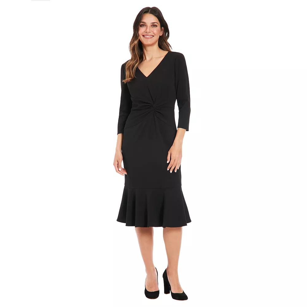 Upgrade your dress collection with this stylish Womens London Times V-Neck Side Twist Midi Dress.Click on this WOMENS GUIDE to find the perfect fit and more! Upgrade your dress collection with this stylish Womens London Times V-Neck Side Twist Midi Dress.Click on this WOMENS GUIDE to find the perfect fit and more! FEATURES V-neck 3/4-length sleeves Zipper back Side twist Sheath silhouette Scuba crepe construction Flounce hem Partially linedFIT & SIZING Fitted straight 42 3/4-in. length from shoulder to hem Midi length hits below the kneeFABRIC & CARE Polyester Machine wash Imported Size: 16. Color: Black. Gender: female. Age Group: adult.