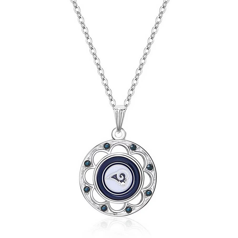 Complete your outfit with the perfect accessory by wearing this Los Angeles Rams Circle Pendant necklace on game day. Its stunning design features a bejeweled rhinestone pendant with your favorite team's logo at the center. Made from durable metal, this stunning necklace lets everyone know you're a proud fan who loves to rep the Los Angeles Rams.