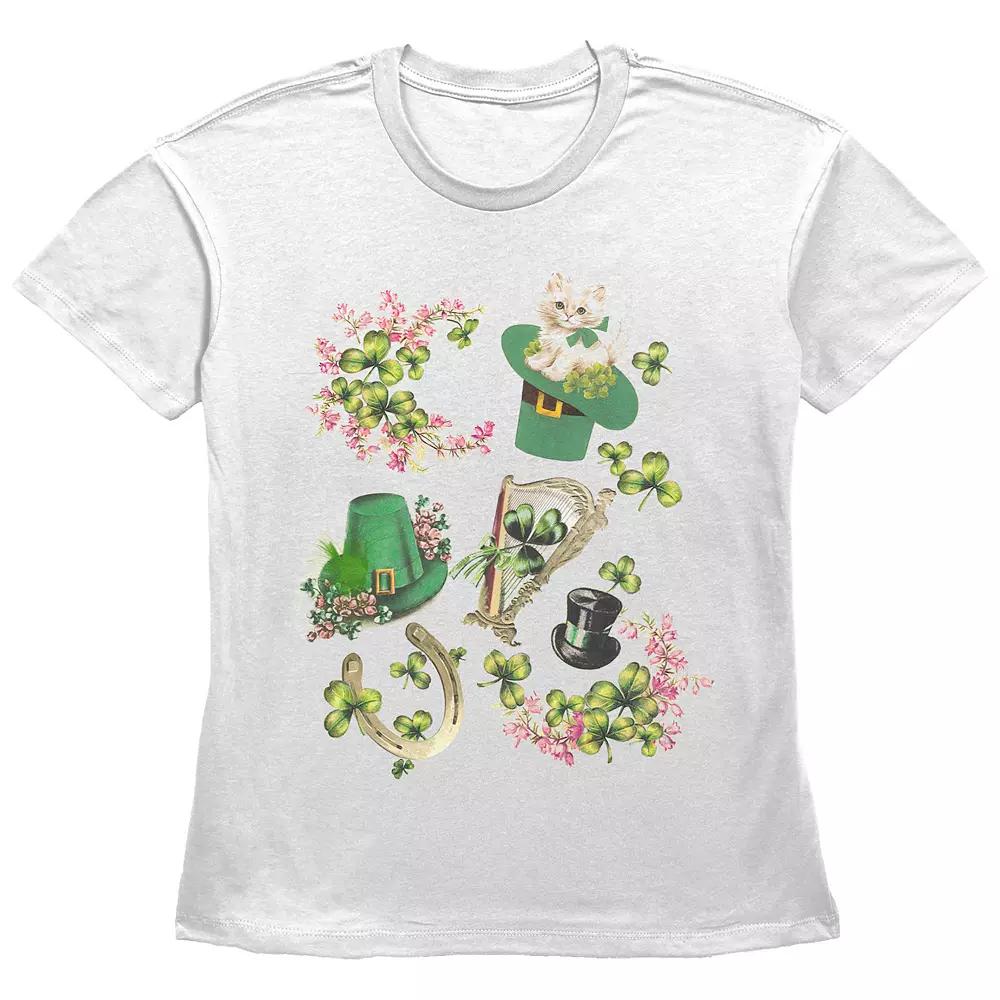 Shell love the look and feel of this Womens Lucky Collage Graphic Tee. FEATURES Crewneck Short SleevesFABRIC & CARE Cotton Machine wash Imported Size: Large. Color: White. Gender: female. Age Group: kids.