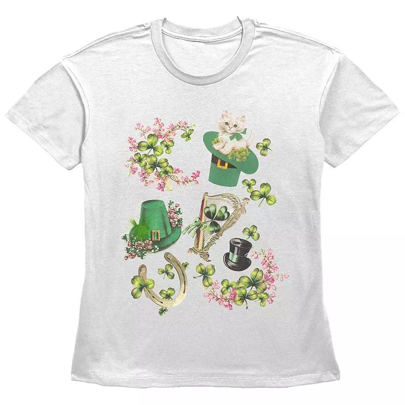 Women's Lucky Collage Graphic Tee, Girl's, Size: Medium, White