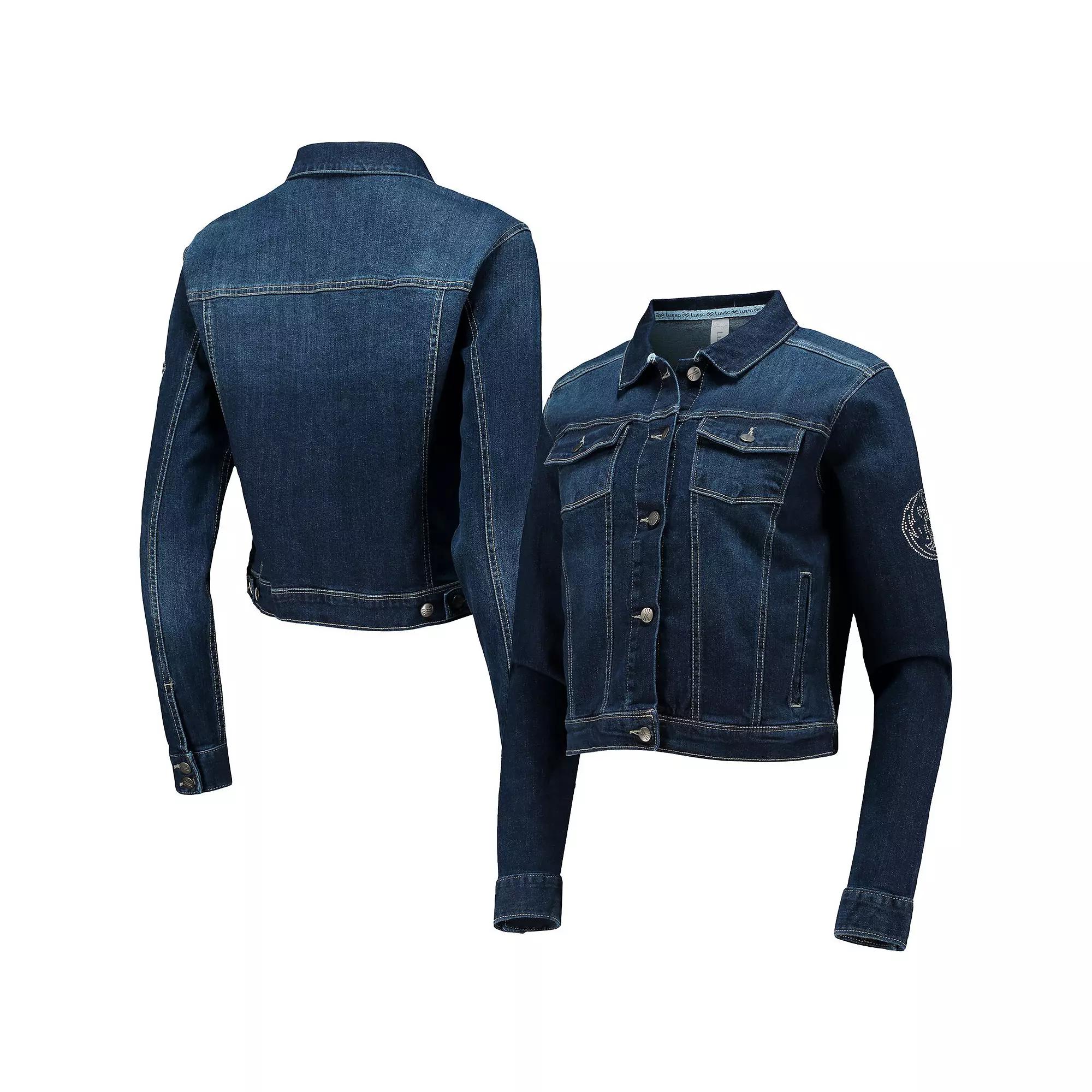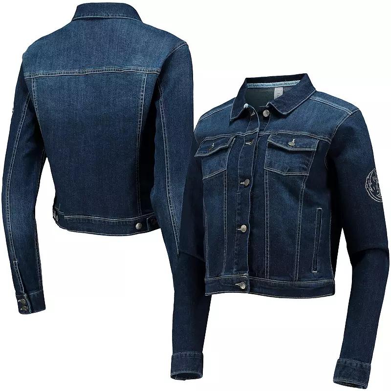 This Dallas Mavericks Georgie button-up jacket by Lusso is a new take on denim. It features a lightweight design and loads of pockets for storage or keeping your hands toasty. The blended fabric provides the perfect amount of stretch for a comfortable fit, and a cropped design makes for an original piece. Best of all, the bold Dallas Mavericks graphics are composed of Swarovski crystals, giving this layer a charming touch.