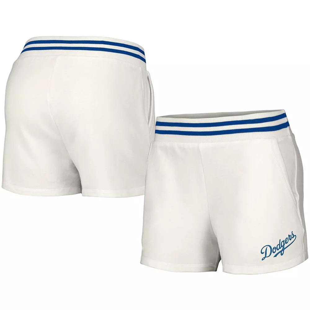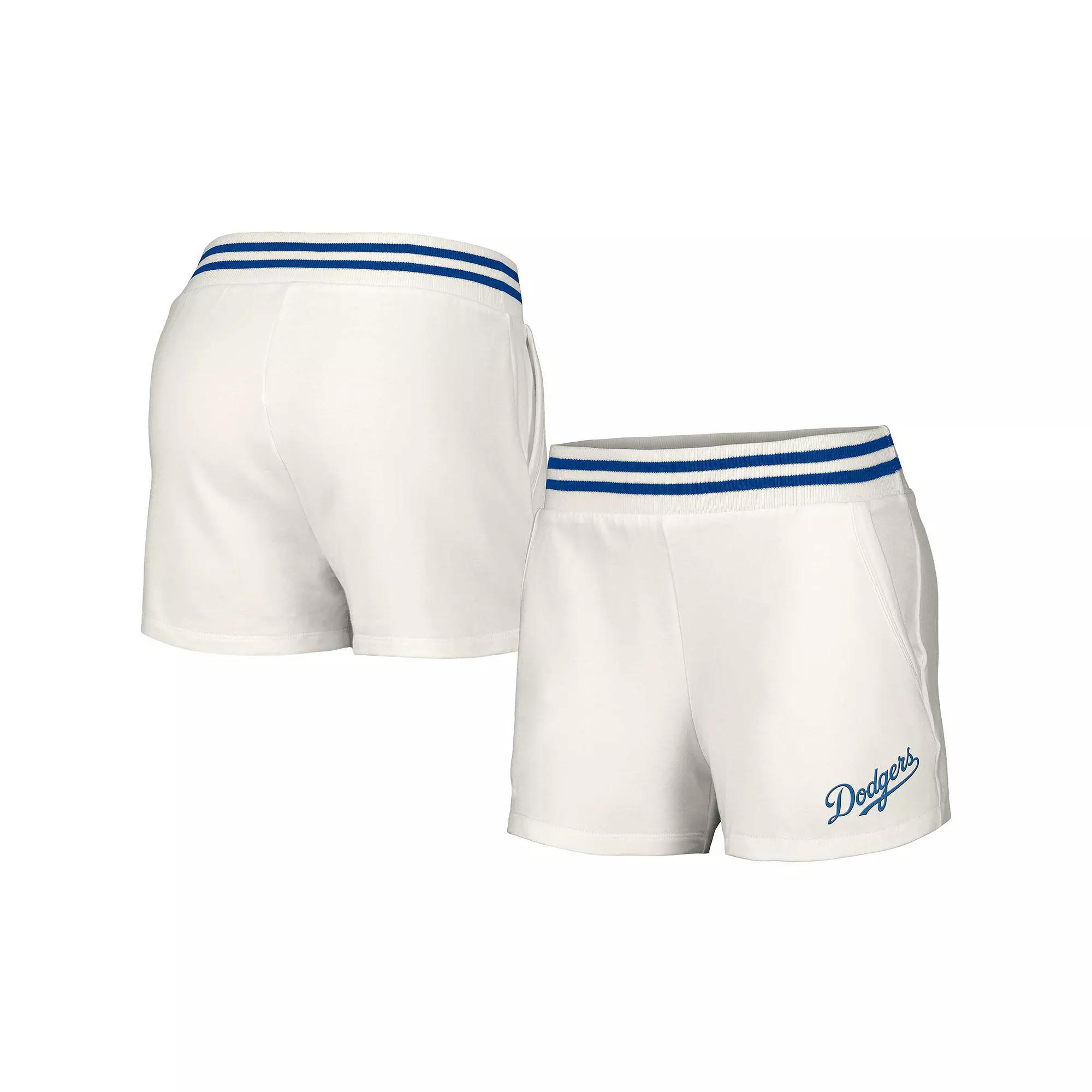 During the heat of Los Angeles Dodgers season, stay cool and comfortable in these Maeg Pocket shorts from Lusso. They feature an embroidered team logo complemented by rib-knit striping. Tri-blend material makes this comfy pair of Los Angeles Dodgers shorts feel super soft. Officially licensed. Brand: Lusso. Embroidered Logo. Machine wash, tumble dry low. Elastic waistband. Material: 48% Cotton/47% Modal/5% Spandex. Imported. Elastic waistband. Two side pockets. Inseam on size S measures approx. 2. Embroidered graphics. Color: White. Gender: female. Age Group: adult.