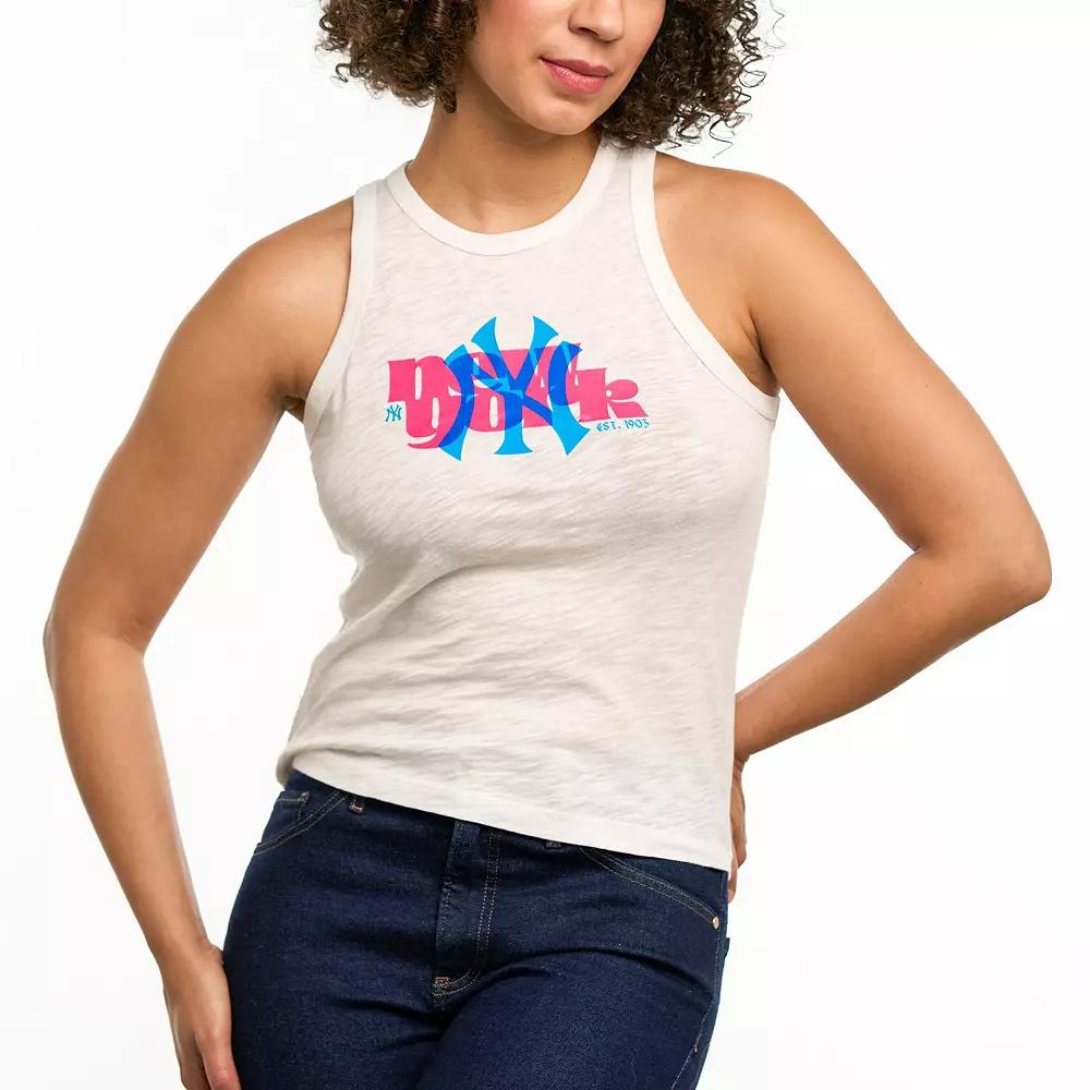 Get ready for a day in the sun with this New York Yankees Lourdes tank top. Crafted by Lusso, it features a groovy team graphics over comfortable fabric. The sleeveless design is perfect for staying cool while cheering the New York Yankees to a win.Get ready for a day in the sun with this New York Yankees Lourdes tank top. Crafted by Lusso, it features a groovy team graphics over comfortable fabric. The sleeveless design is perfect for staying cool while cheering the New York Yankees to a win.PRODUCT FEATURESOfficially licensedScreen print graphicsMachine wash with garment inside out, tumble dry lowBrand: LussoSleevelessCrew neckMaterial: 100% Cotton Color: White. Gender: female. Age Group: adult.