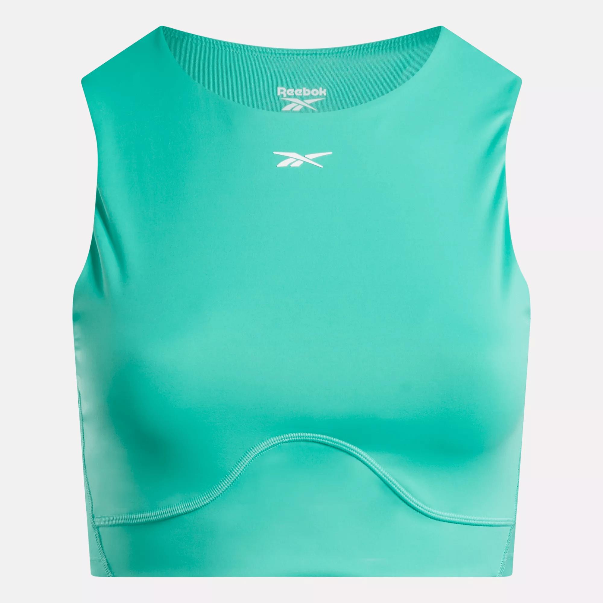 A sweat-wicking crop top that keeps you dry as you get after itGive your workout a lift. This women's Reebok crop top is built with confidence-boosting technology that will leave you feeling snatched, smooth and sculpted from cardio class to barbell sessions. A curve-hugging fit and a supportive contour panel amplifies your boldness. RBK-DRY wicks moisture to keep you dry as your heart rate rises.